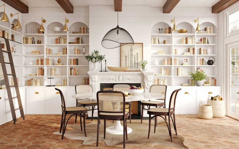 This style brings to mind the “simple life,” says Heather: “Out in the country with expansive views and fresh-baked bread on the table. It’s basically the design parallel to the homemade sourdough trend.”
