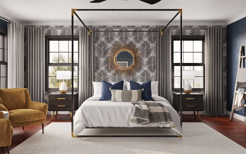 Florals are perennially popular. Whether you go the prettier route (see above) or choose something more graphic or botanical-inspired, rose wallpaper is a sought-after look. This moody, hyper-realistic take on roses would add glam and drama to a bedroom. Or, opt for a more traditional look with this Cole & Son style, offering a subtle English country aesthetic. Rose doesn’t have to mean a rosy hue, either. This Magnolia Home by Joanna Gaines style achieves a vintage rose look with tones of gray, green and indigo.