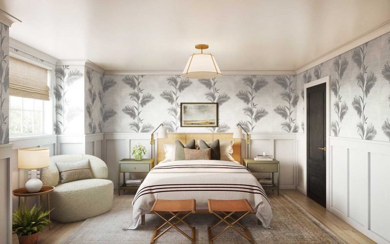 Below, you’ll find the most asked-about wallpaper patterns and colors our designers see, plus some of their go-to favorites. Keep scrolling tips on how to select the right wallpaper for your space.
