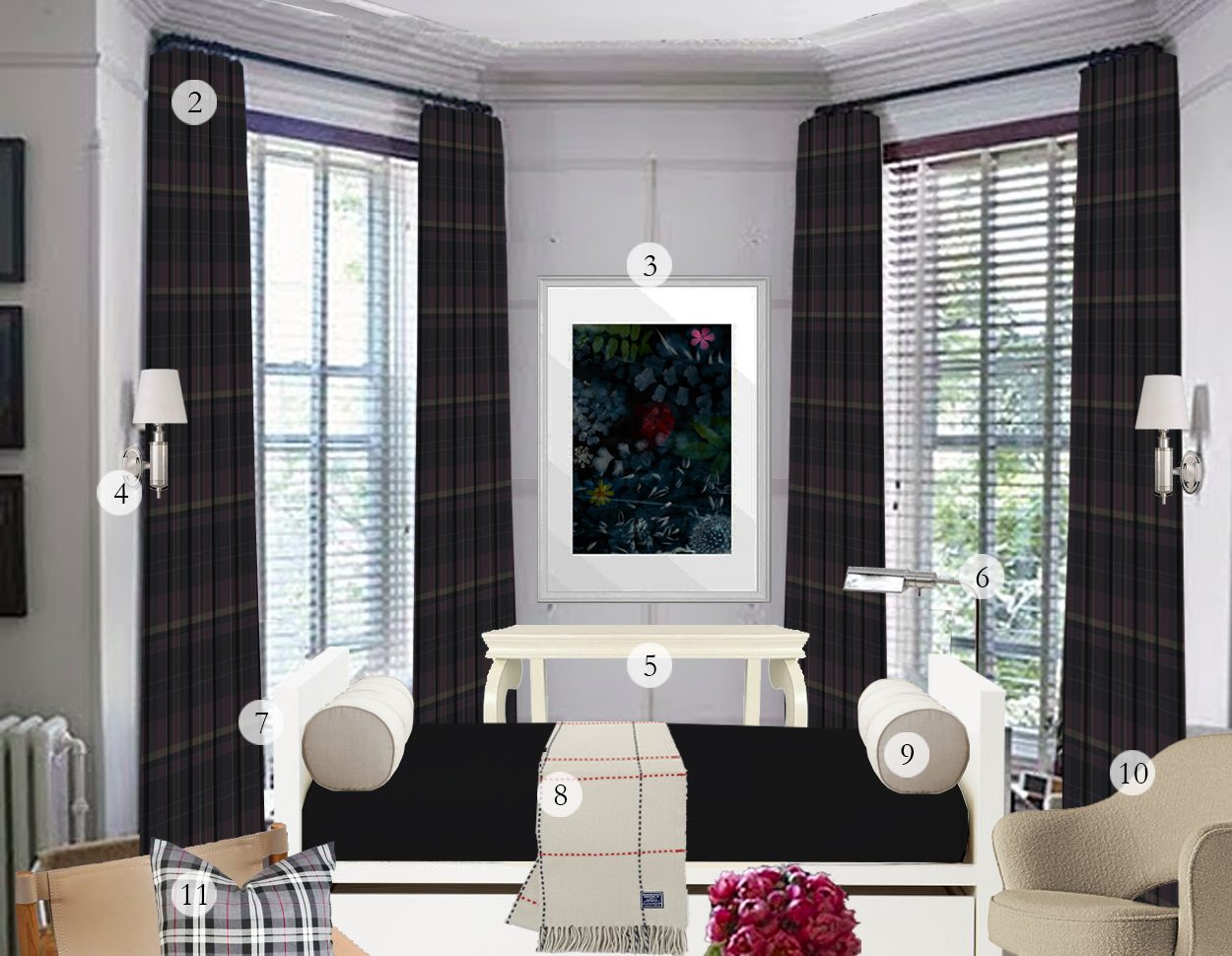 Now, Shelby provided fabric for the drapery since she couldn’t find plaid drapes perfect for the look…but we will have a post on DIY drapes coming STAT! Alternatively, you could keep your eye out for some darker, earth-toned plaid drapes. I have a feeling they’re out there somewhere!