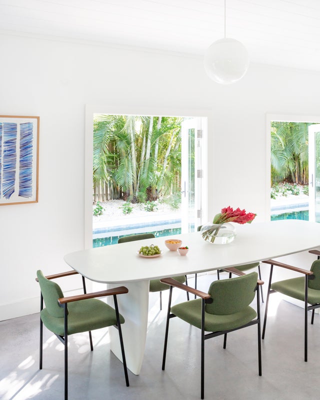 Beyond keeping communication open and clear to avoid common partner design dilemmas, you might consider dialing down contrast and saturation for workspaces that see constant daily use (I’m looking at you, dining table/conference room/craft studio) and instead opting for moveable flowers, artwork or accessories to bring in additional interest.
