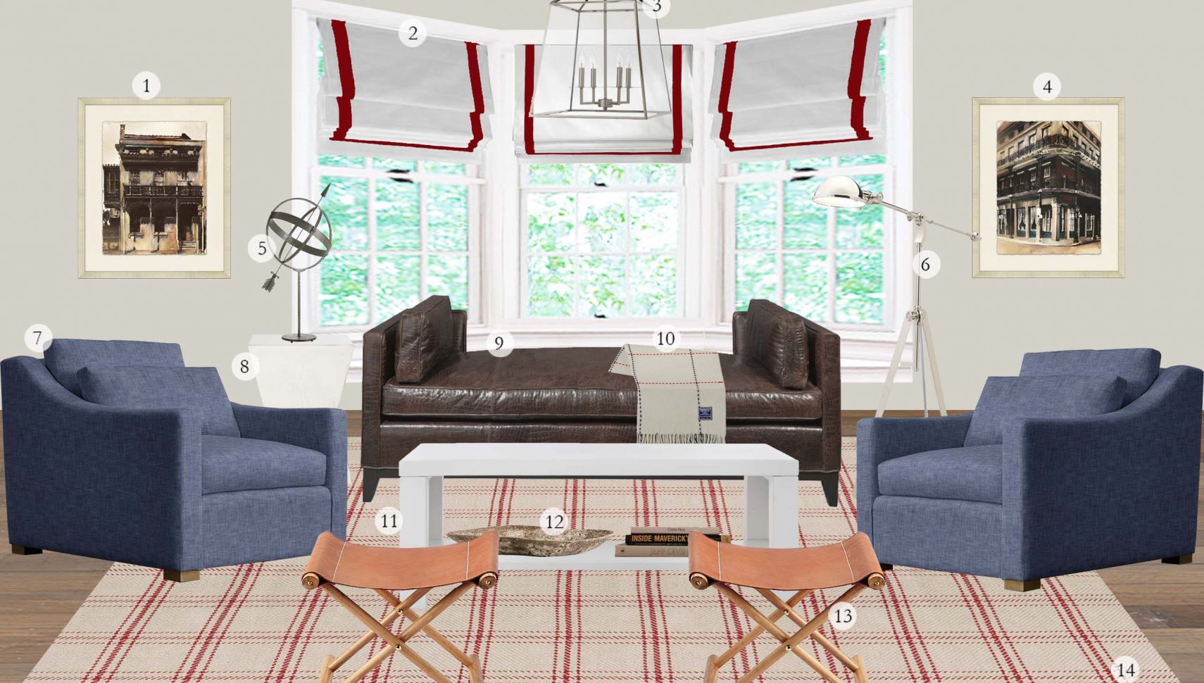 We actually hadn’t heard of Carraway prior to his inclusion in the Southern Living piece. But we were so taken by his confident yet classic sartorial sensibility that we had to learn a little more. So what does Rashon Carraway’s home look like anyway? You got us– we have no idea. But our Director of Design, Shelby Girard, came up with a lovely little room design based on Carraway’s Southern Living Look: