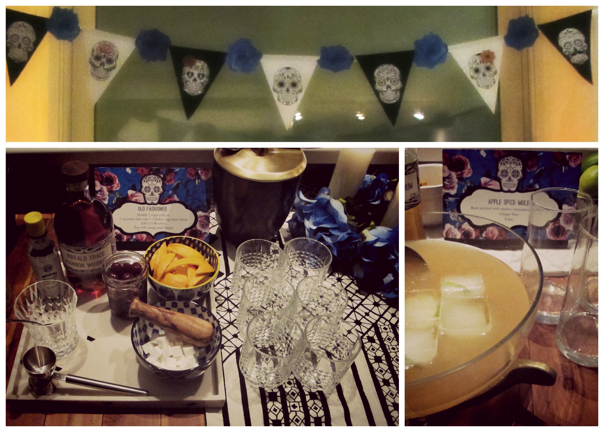 Shelby prepared a station for old fashioned cocktails along with an apple spice mule punch (which she made by distilling apples, cinnamon, cloves, and star anise in Bacardi rum, and finally adding ginger beer and lime)! She made the banners, drink labels and the signs by the punch and old fashioned station.