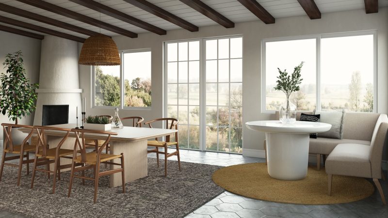 “A lot of warm minimalism spaces are asymmetrical but balanced, and feature one-of-a-kind statement pieces,” says Melissa. Think: off-centered artwork above a fireplace, mis-matched chairs, and angular furniture paired with sculptural accents. Materials, again, are natural—think wood, marble, rattan, and linen.