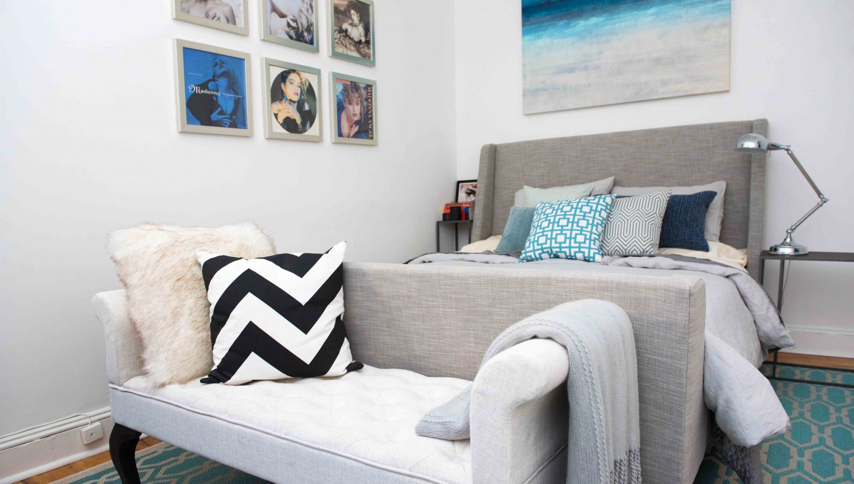 When your bedding and bedroom decor is the primary focal point of your room, there’s no amount of messy hair that can inter