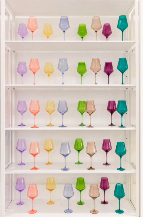 Estelle Colored Glass is a luxury brand known for hand-blown stemware in luscious Easter egg colors. Estelle-inspired glassware is having a moment this spring, just in time for sun-dappled cocktail hours and warm-weather brunches.