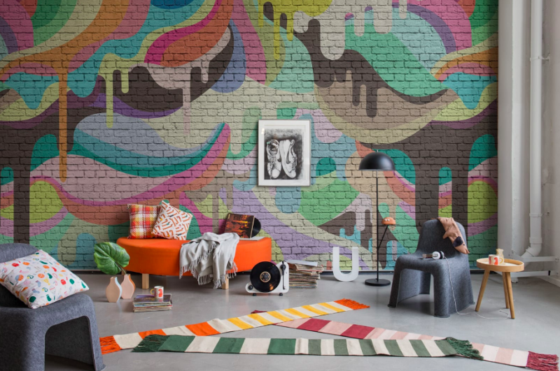 Combine bold tones and faux texture with this Dripping Rainbow wallpaper from Rebel Walls. Try it as a statement wall, then pull paint color from the wallpaper’s many hues (we’d personally opt for the warm greige — which looks a lot like Benjamin Moore Balboa Mist — or the punchy, mid-tone teal).