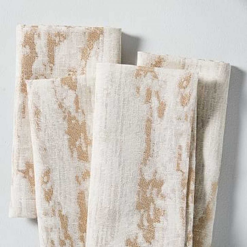 Next up: napkins. Layer additional texture onto your tablescape with napkins. Again, our go-to is (you guessed it) linen. If you’re aiming for a formal yet cozy aesthetic, the Bark Textured Jacquard napkins from West Elm are on-brand and on-budget.
