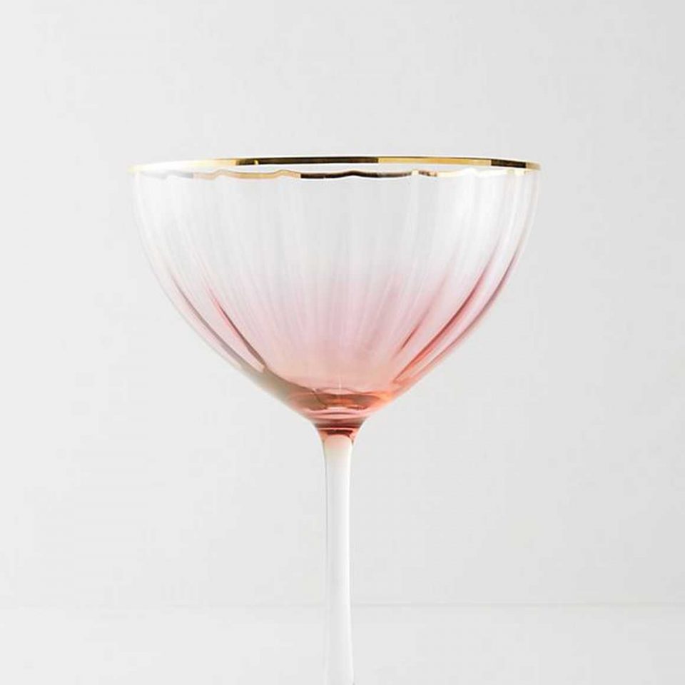 Things get even more creative with unique cocktail glassware. The crystalline waterfall coupe glasses from Anthropologie bring a touch of glam to any formal occasion. The coupe-style glass is typically used for mixed drinks, but the full waterfall collection at Anthropologie includes everything from wine glasses to a carafe and more.