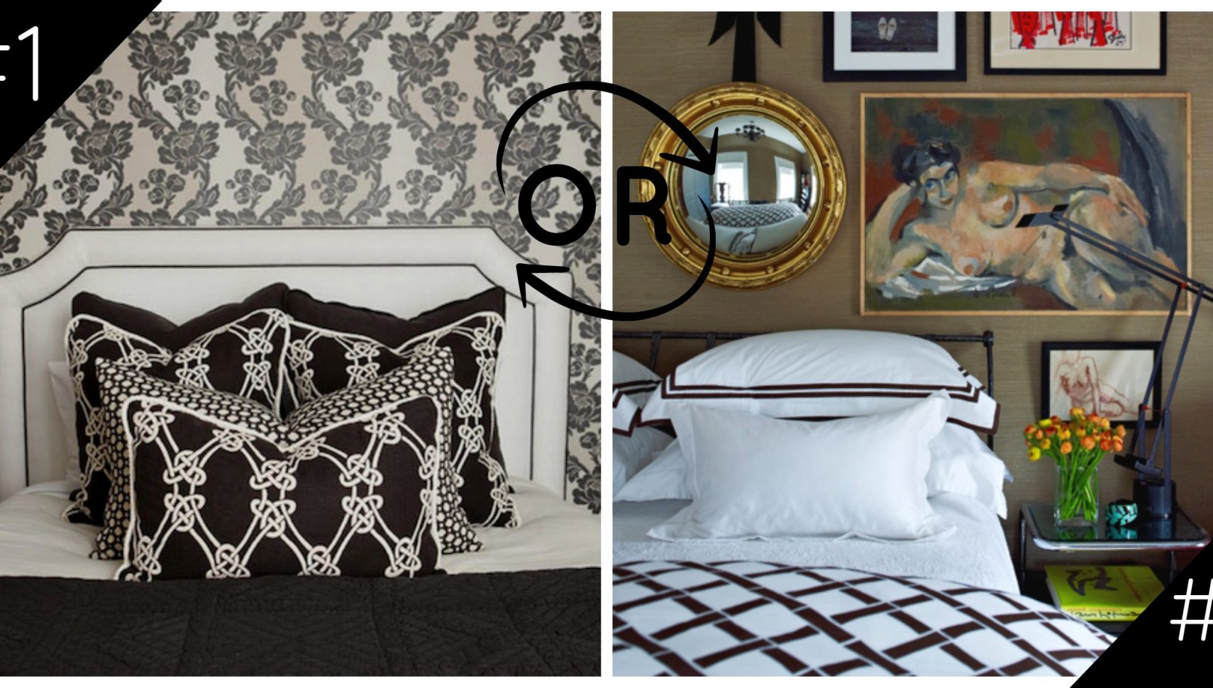 It’s no secret- I’m obsessed with black and white EVERYTHING. We already covered my love of black and white fireplaces (by the way, we still haven’t chosen a direction for our own!)– today we’ll look at 2 fabulous black and white bedroom designs. You tell me– which one takes the cake?
