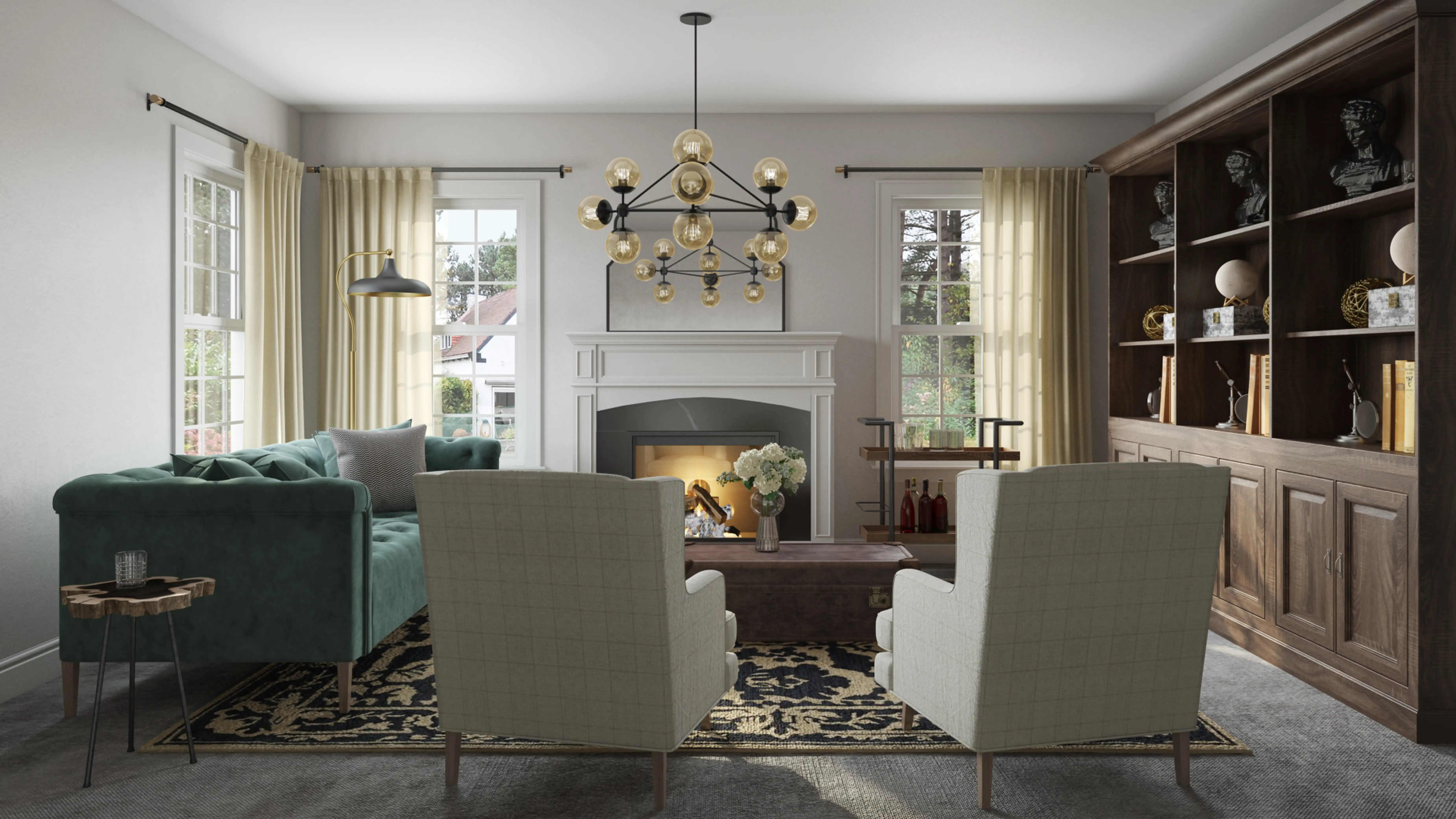 To brighten the design, Classic chandeliers and lamps were added to the room. Discover Lighting design inspiration on Havenly.