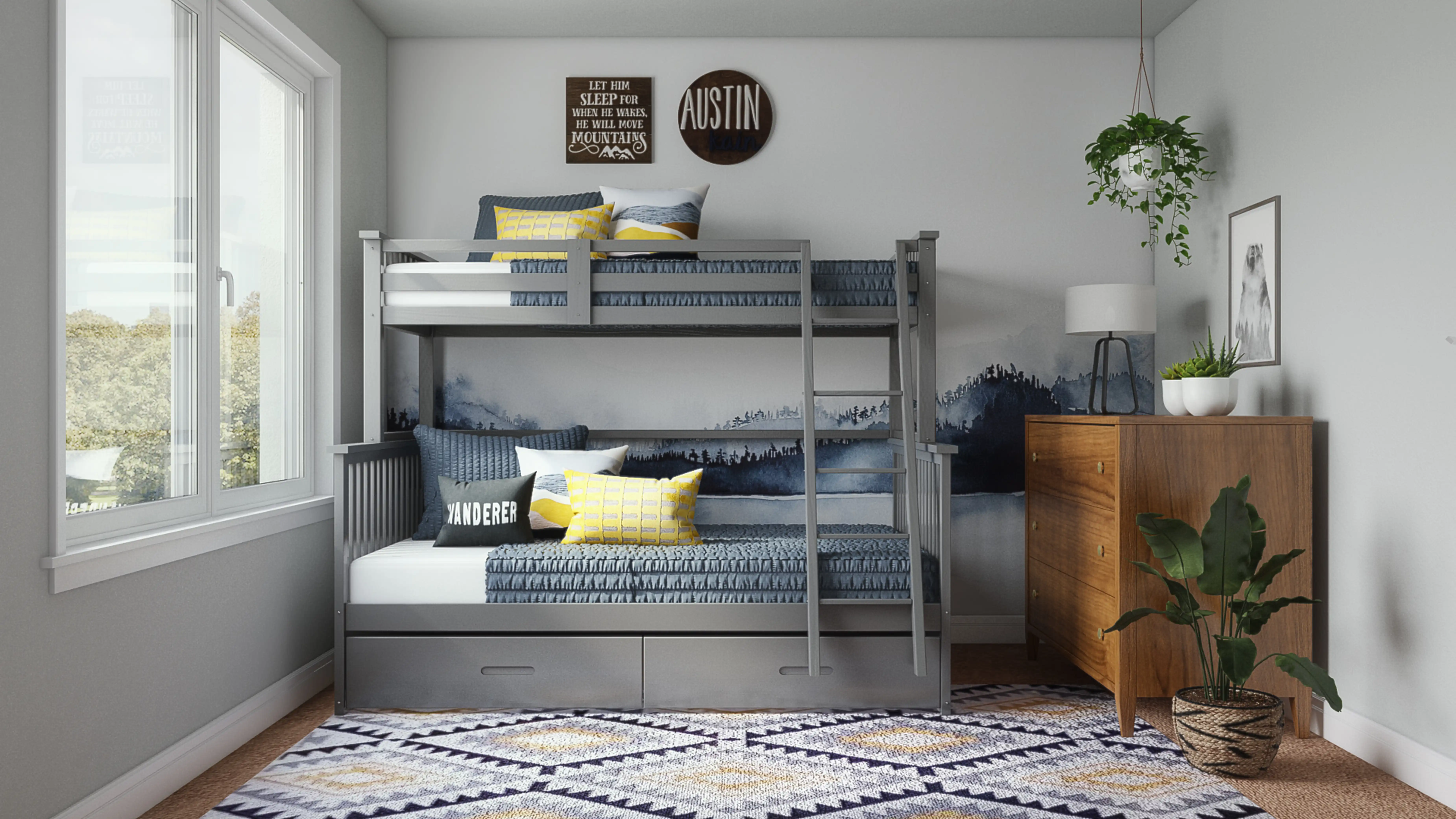 For this room, Lindsay selected bookcases, standing shelves, beds, and bed frames from Crate, Kids, and Wayfair. Discover Furniture design inspiration on Havenly.