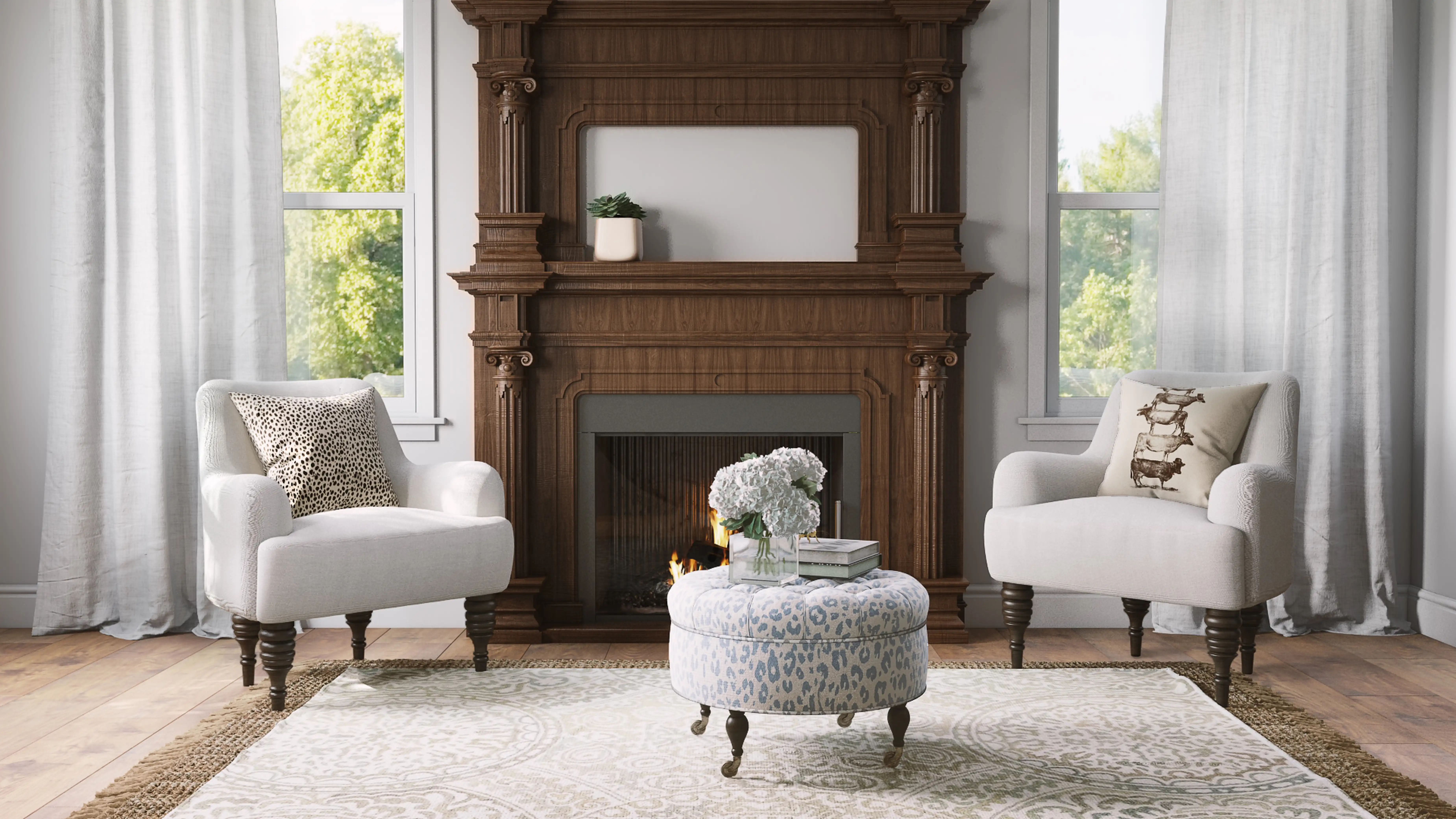 For this Living Room, Austin selected ottomans, arm chairs, recliners, and sleeper chairs from Perigold and Skyline Furniture. Discover Furniture design inspiration on Havenly.