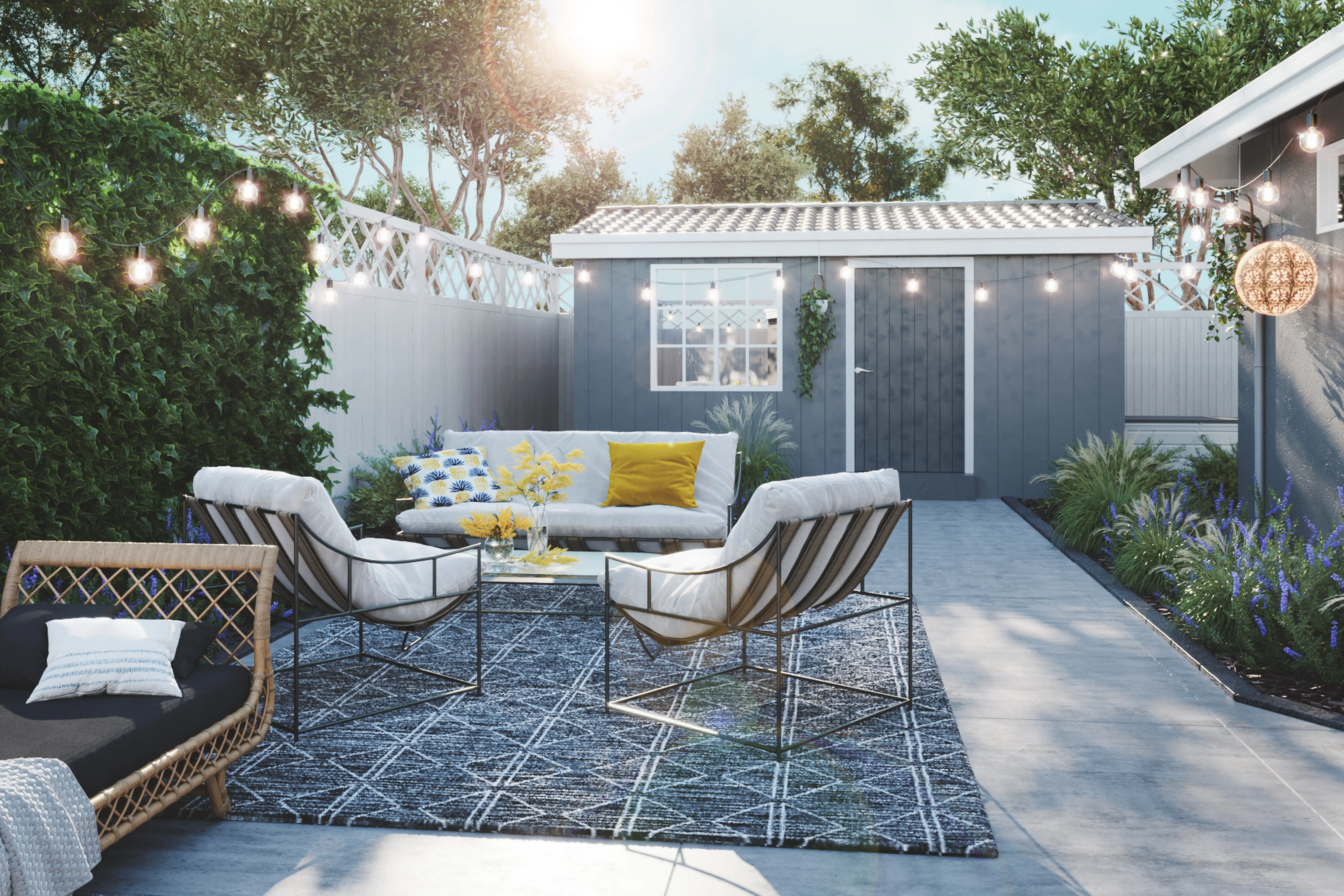 For this Outdoor Space, Samantha selected accent tables and outdoor seating from Pottery Barn and Article. Discover Furniture design inspiration on Havenly.
