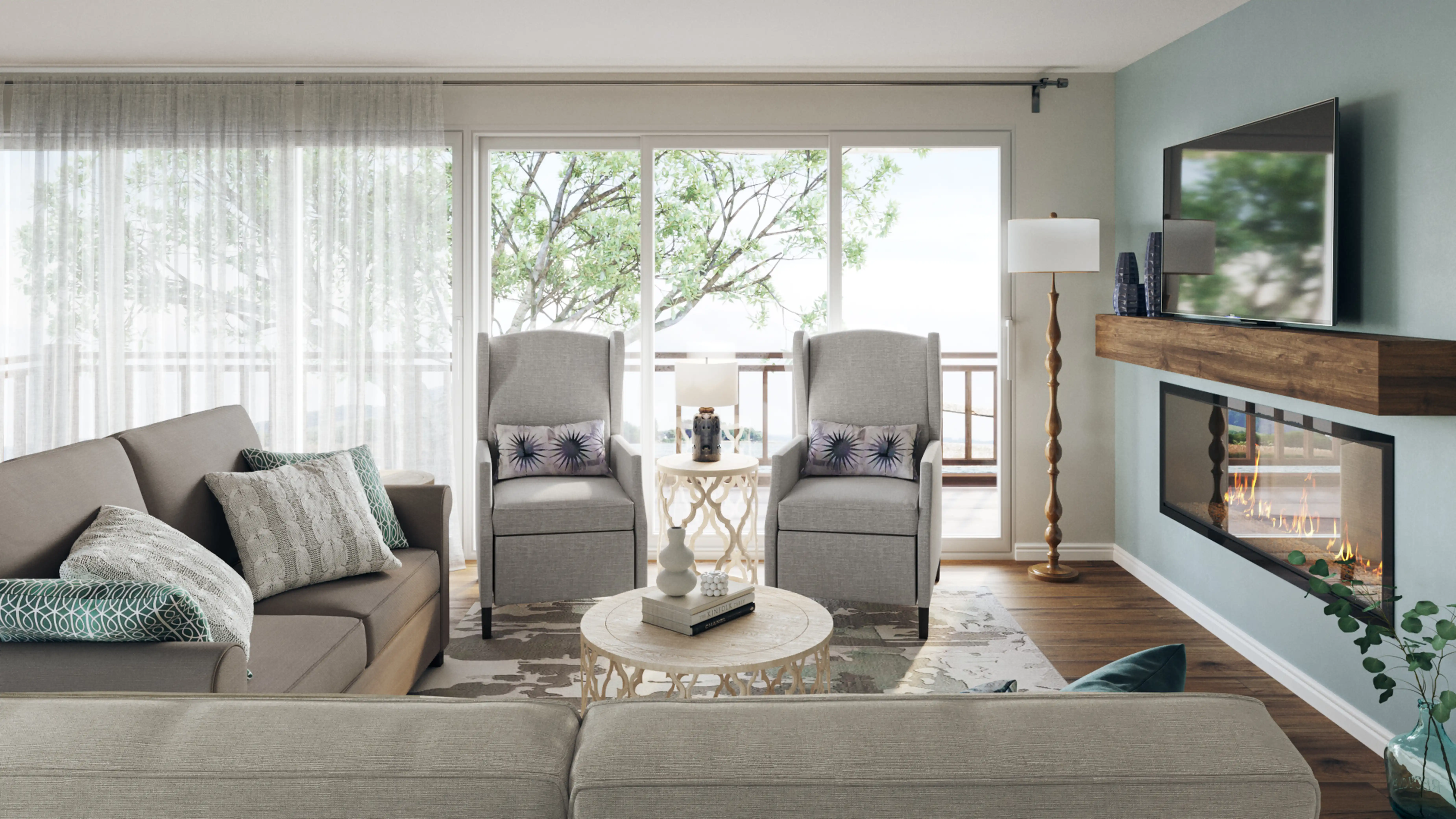 For this Living Room, Austin selected arm chairs, recliners, sleeper chairs, and coffee tables from Wayfair and Essentials for Living. Discover Furniture design inspiration on Havenly.