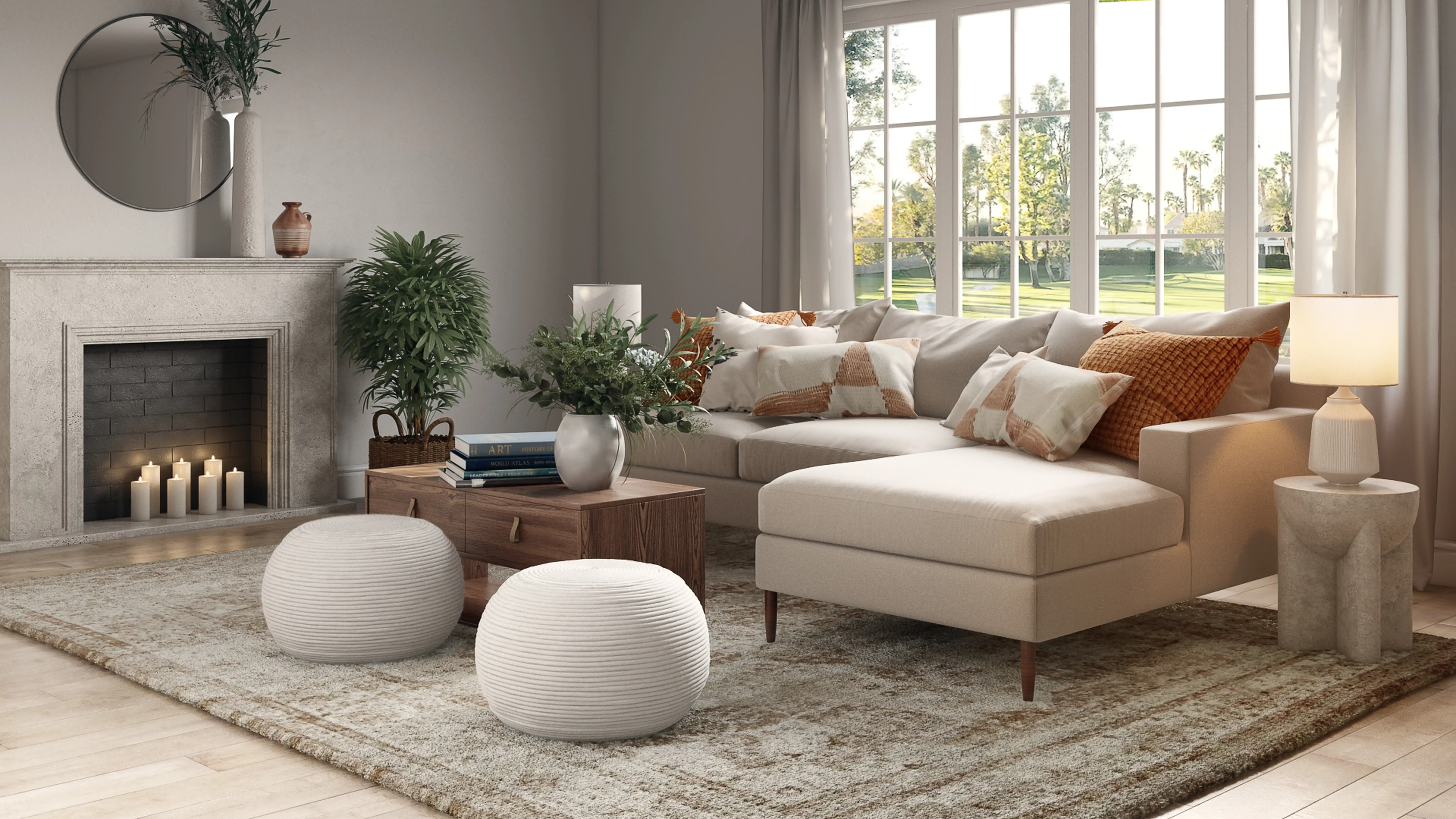 For this room, Nicolle selected poufs, media storage cabinets, and racks from CB2, Crate, and Barrel. Discover Furniture design inspiration on Havenly.