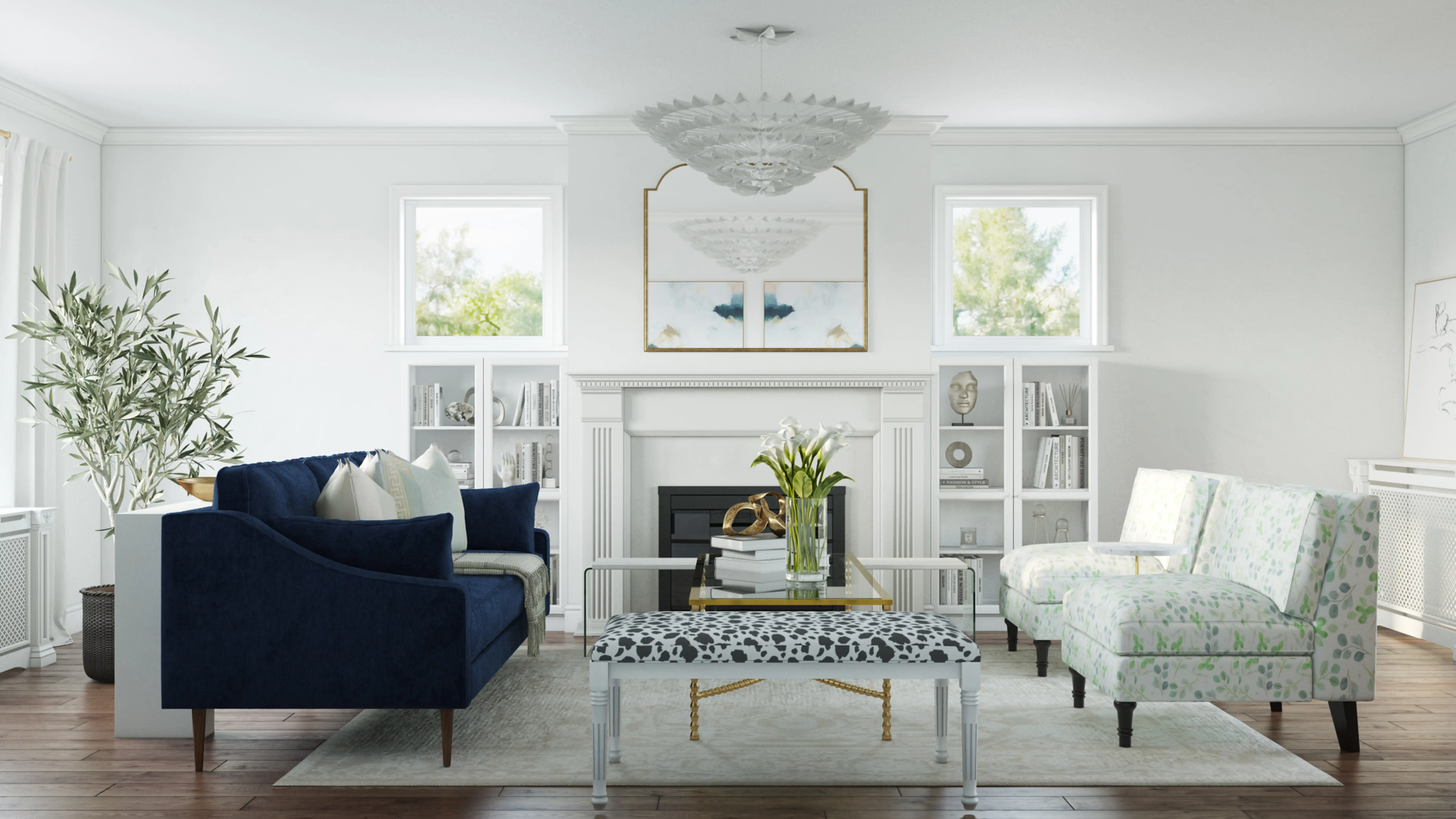 For this Living Room, Vivian selected coffee tables and benches from Safavieh and Wayfair. Discover Furniture design inspiration on Havenly.