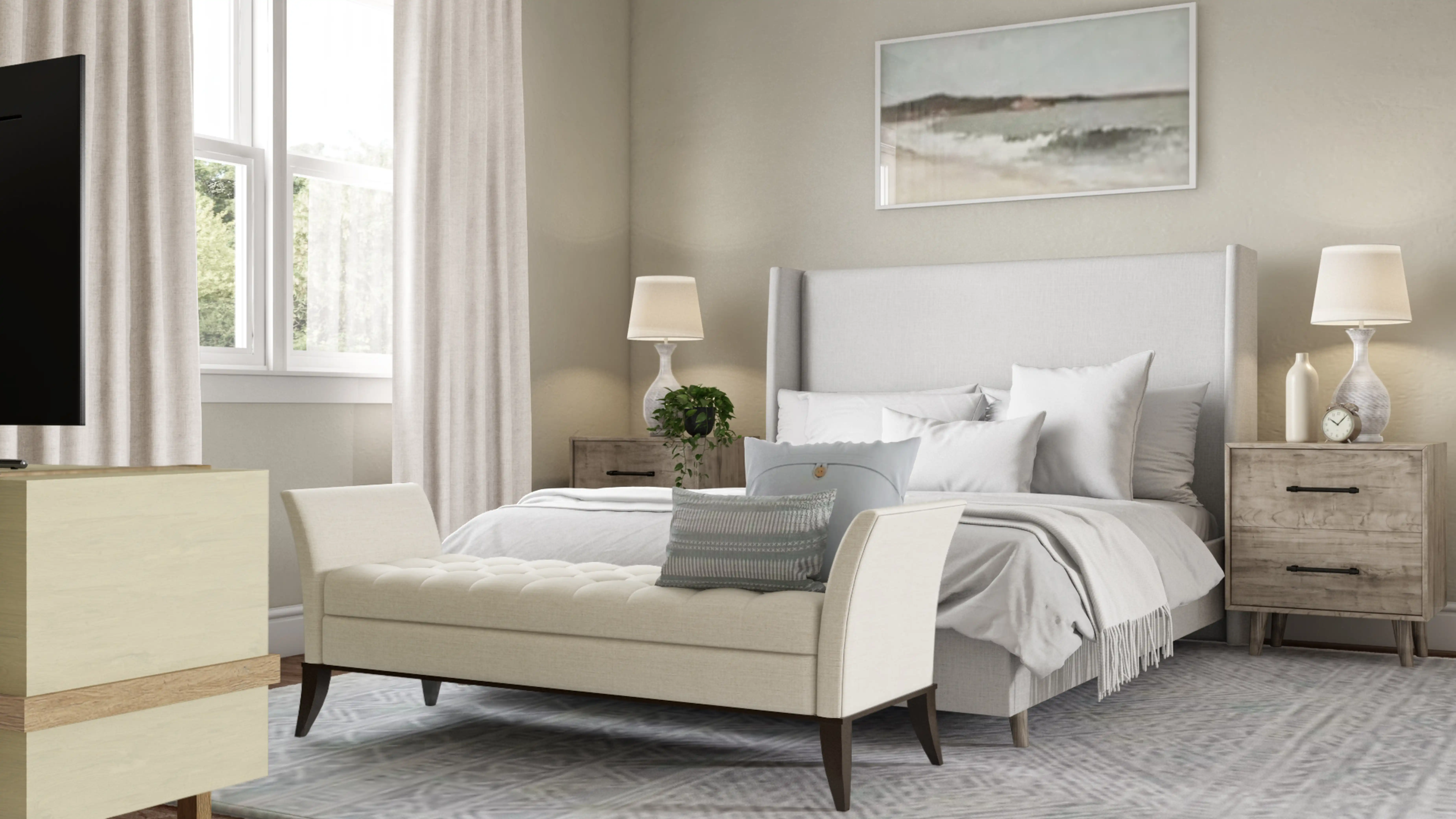 For this room, Lacey selected end tables and benches from Crate, Barrel, and Wayfair. Discover Furniture design inspiration on Havenly.