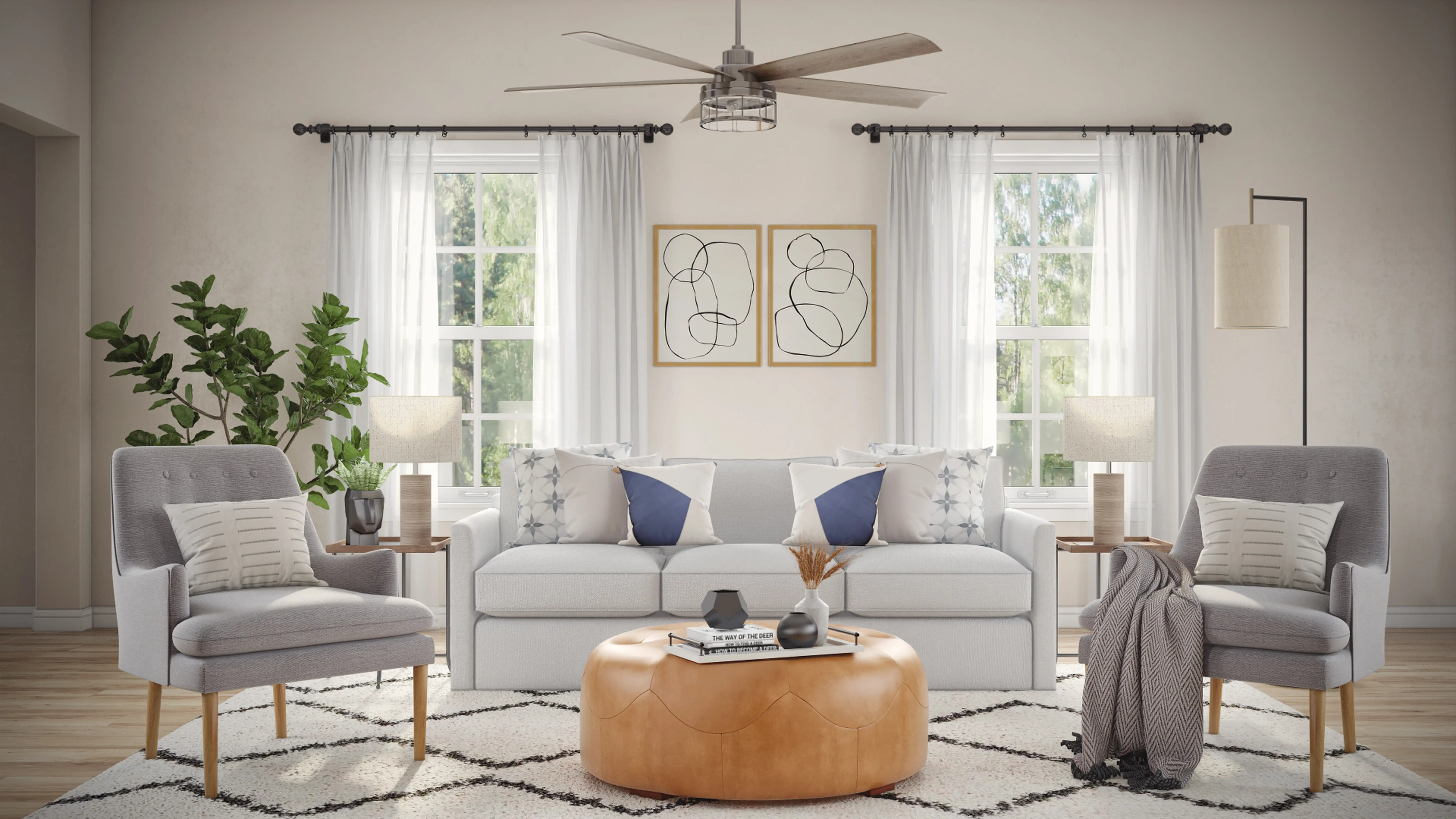 For this Living Room, Ingrid selected sofas and ottomans from Pottery Barn and Article. Discover Furniture design inspiration on Havenly.