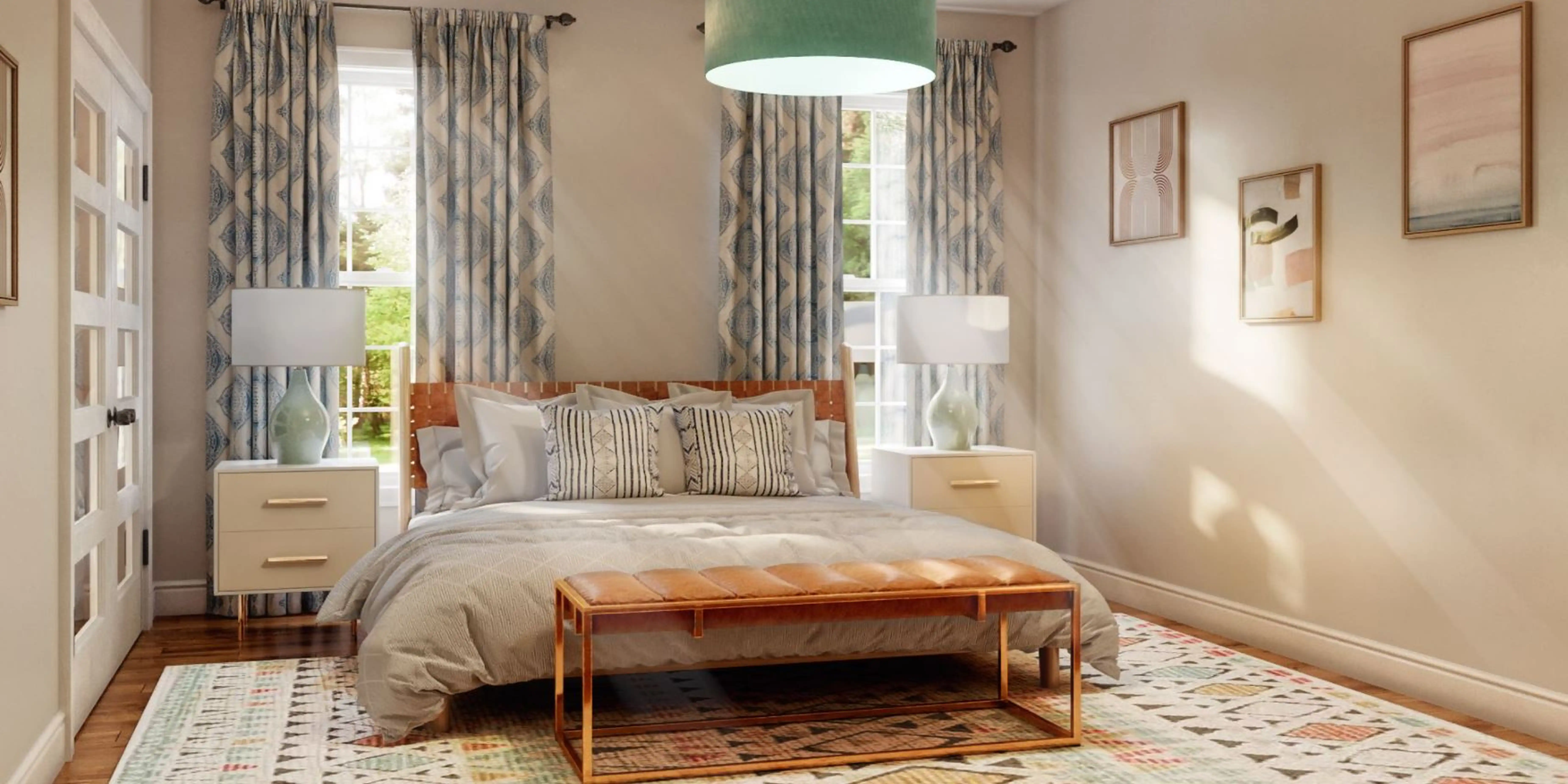 To brighten the design, Bohemian chandeliers and lamps were added to the room. Discover Lighting design inspiration on Havenly.