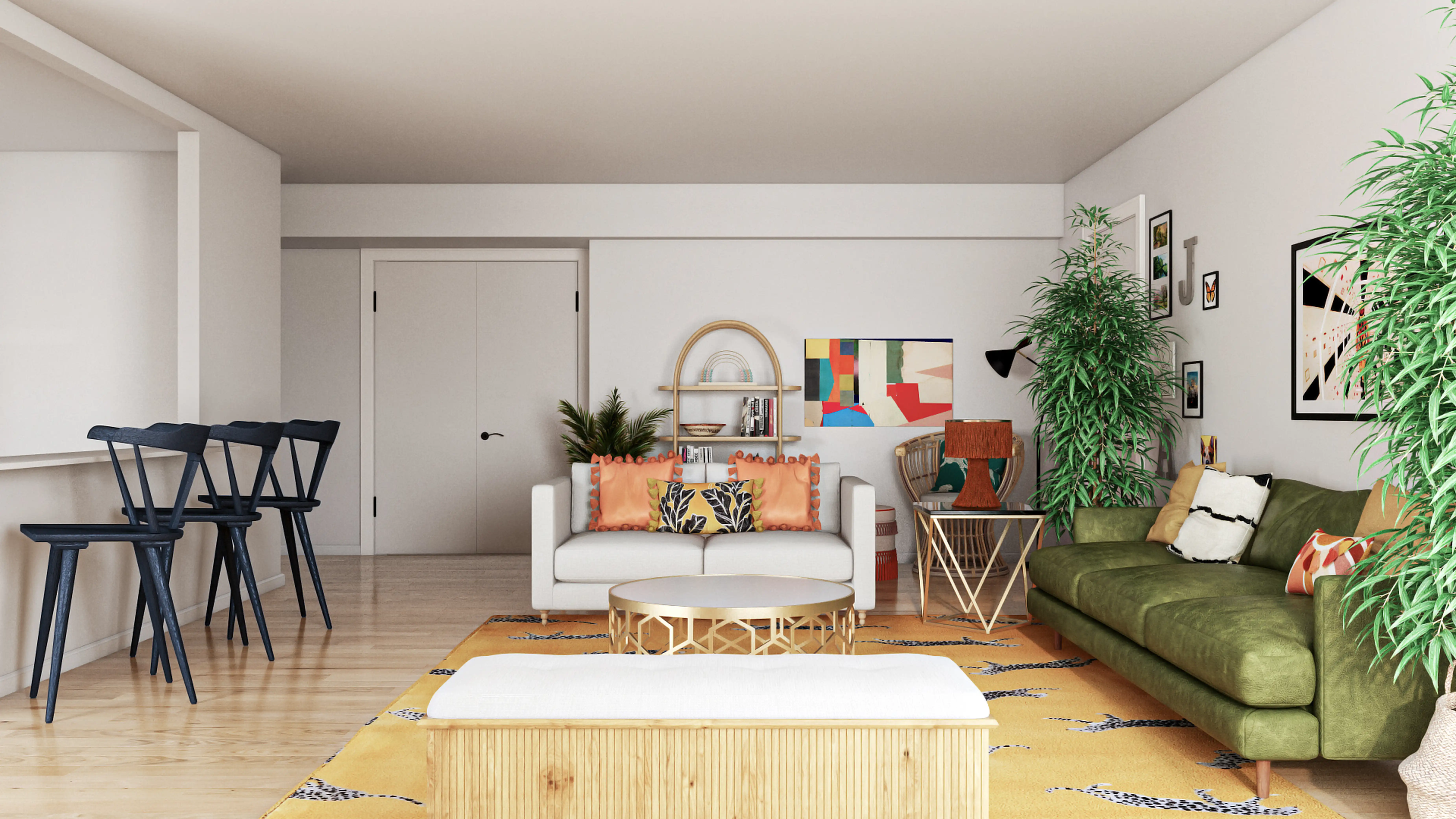 For this Living Room, Senna selected table, bar stools, and sofas from Anthropologie and Interior Define. Discover Furniture design inspiration on Havenly.