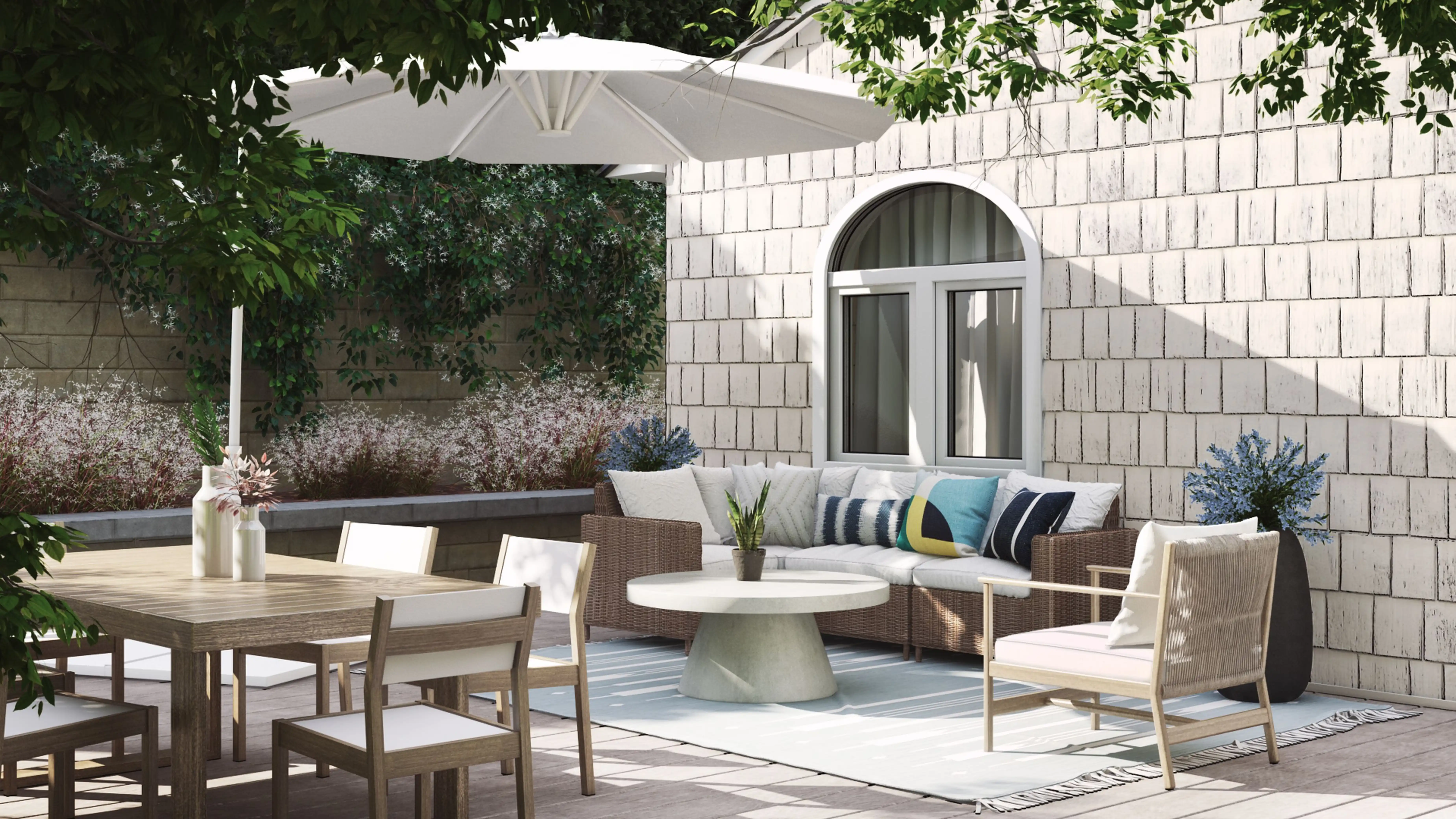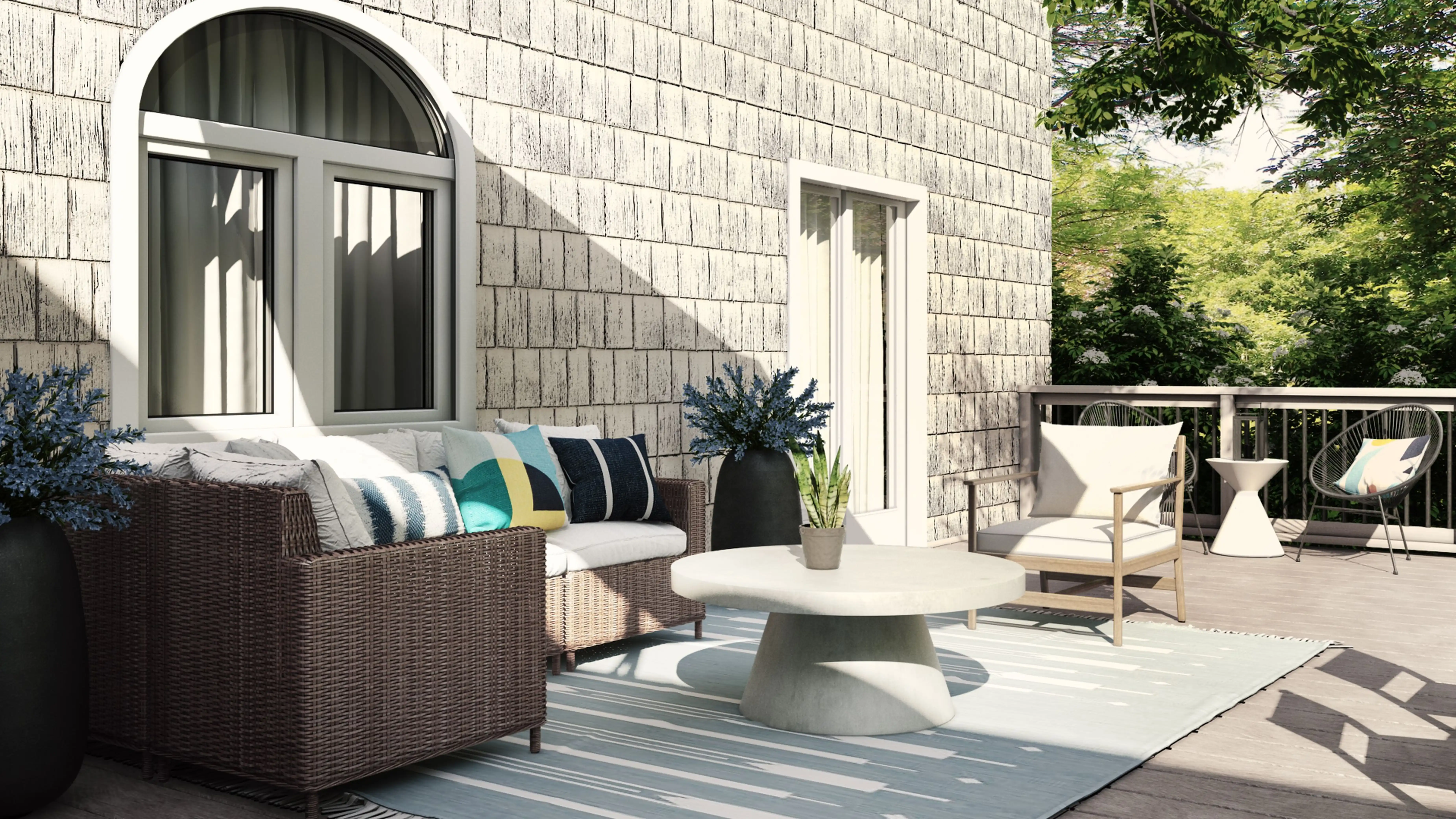 No room is complete without outdoor decor, pots, and planters! Mixing up sunbrella canvas and metal with blue multi and white helps to add the finishing touches to the room. Discover Decor & Pillow design inspiration on Havenly.
