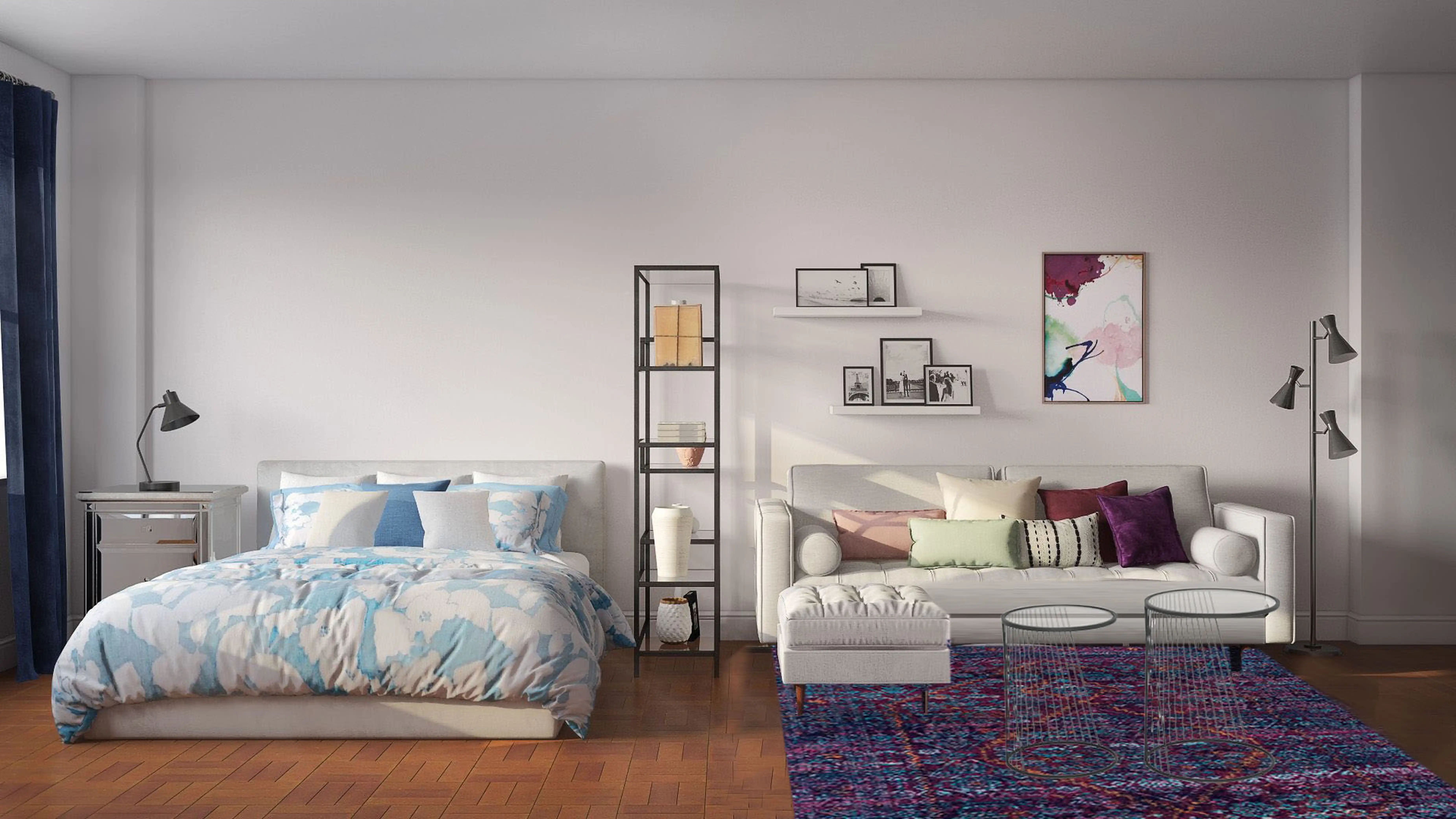 For this Living Room, Hadasa selected wall shelves, ledges, and sofas from Home Depot and Article. Discover Furniture design inspiration on Havenly.