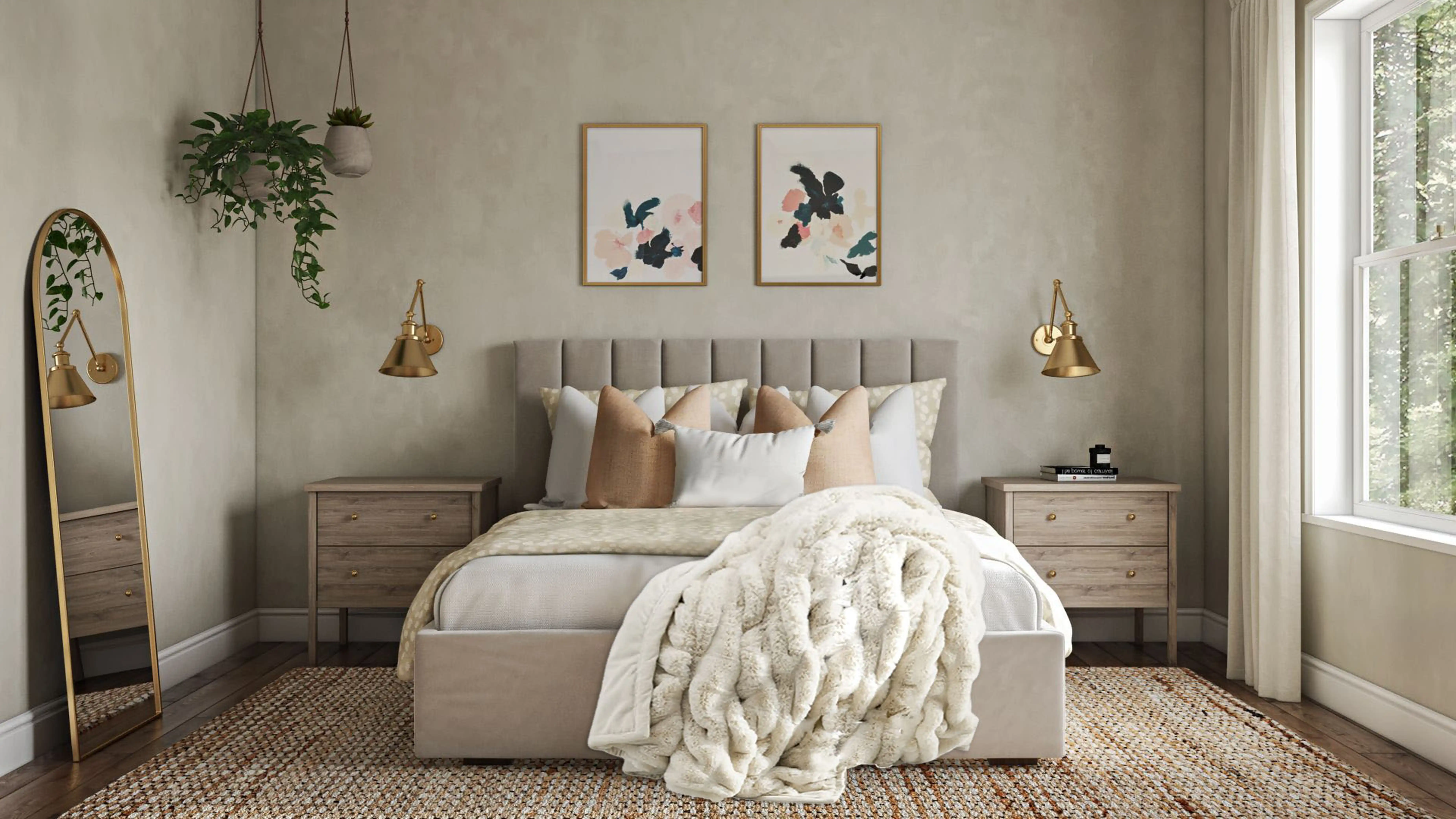 No room is complete without blankets and artificial flora! Mixing up faux fur, polyester, and plastic with ivory and green helps to add the finishing touches to the Bedroom. Discover Decor & Pillow design inspiration on Havenly.
