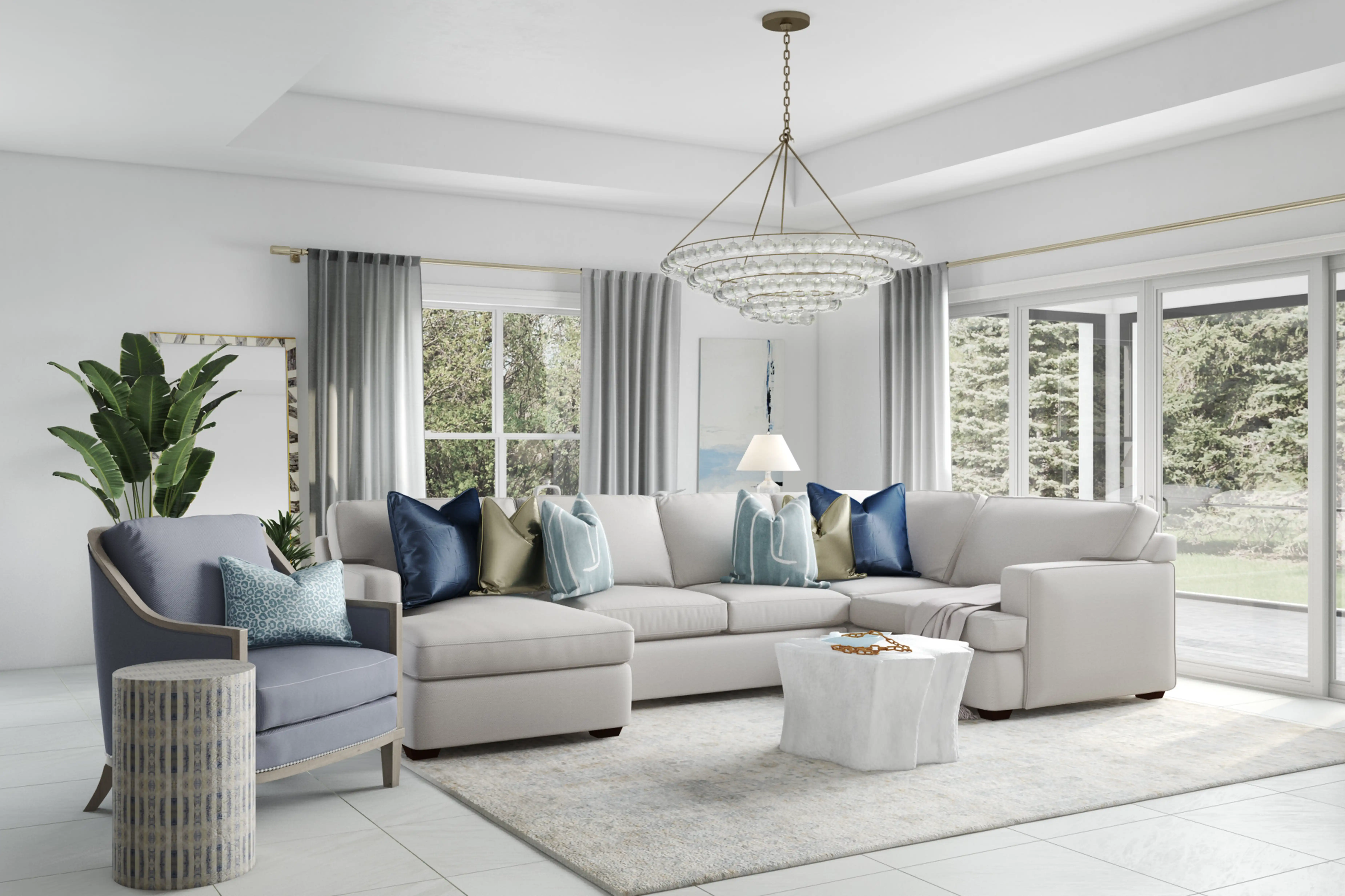 To brighten the design, Contemporary ceiling light fixtures and lamps were added to the room. Discover Lighting design inspiration on Havenly.