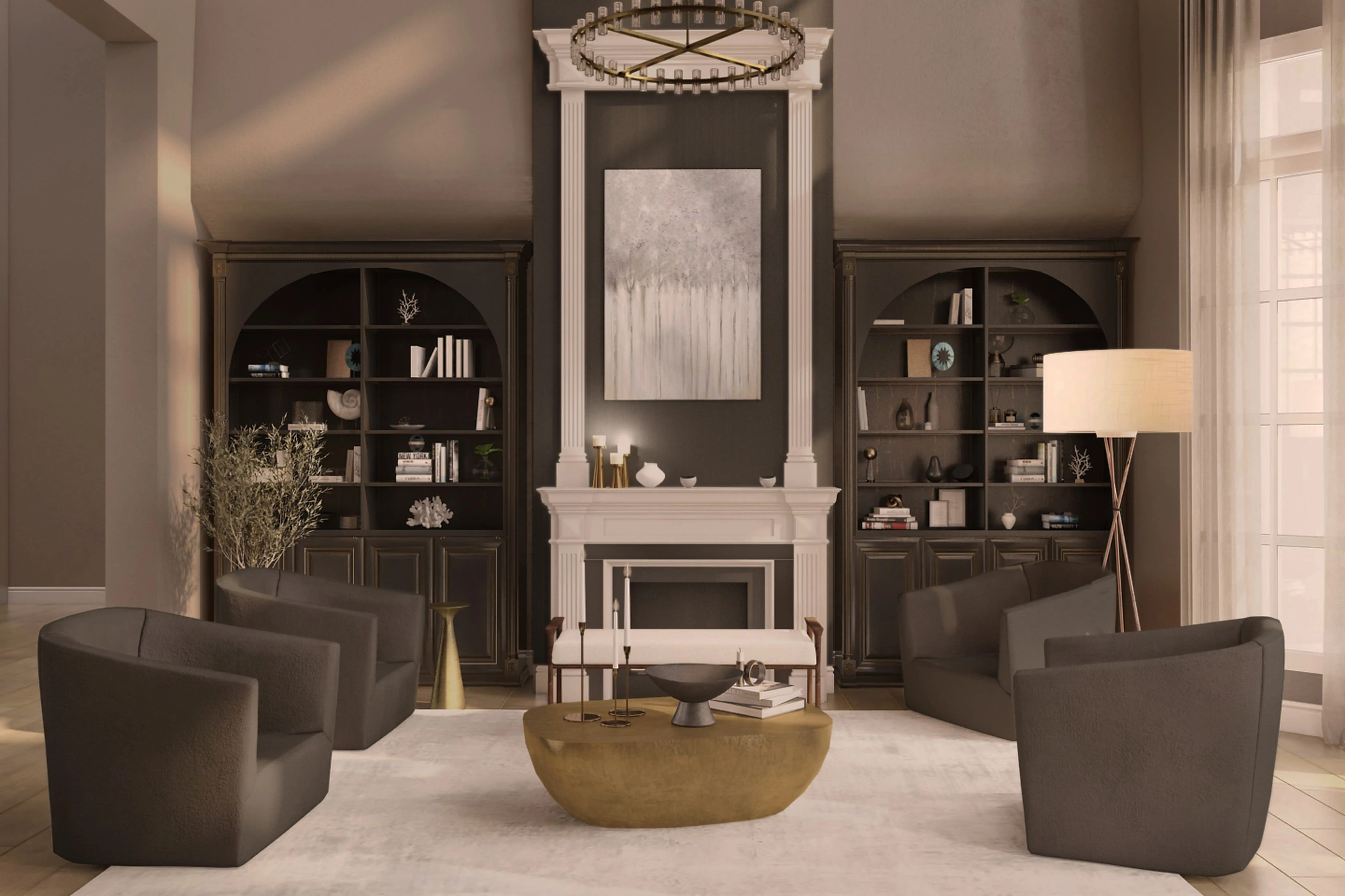 To brighten the design, Contemporary lamps and chandeliers were added to the room. Discover Lighting design inspiration on Havenly.