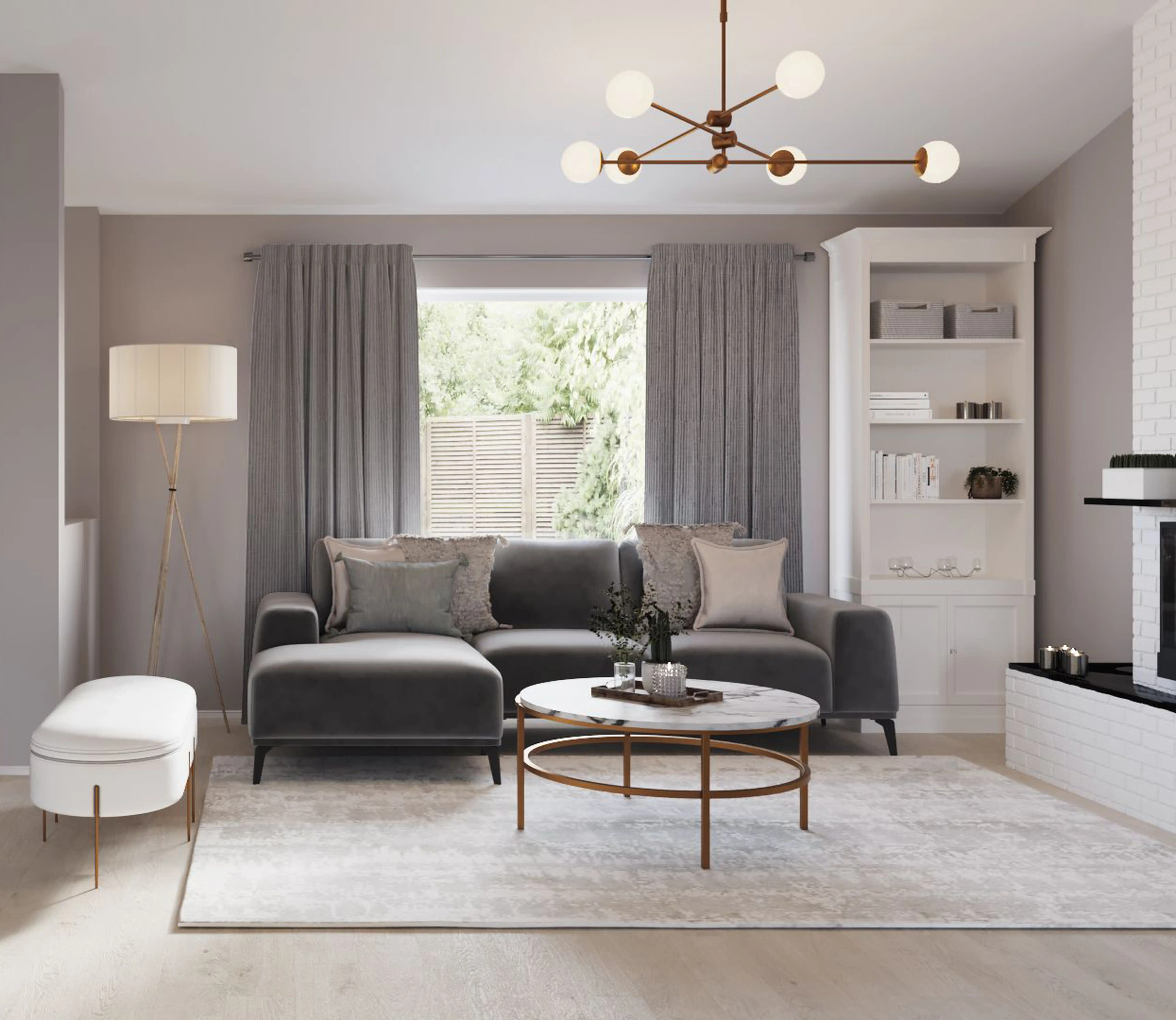 To brighten the design, Contemporary lamps and chandeliers were added to the room. Discover Lighting design inspiration on Havenly.