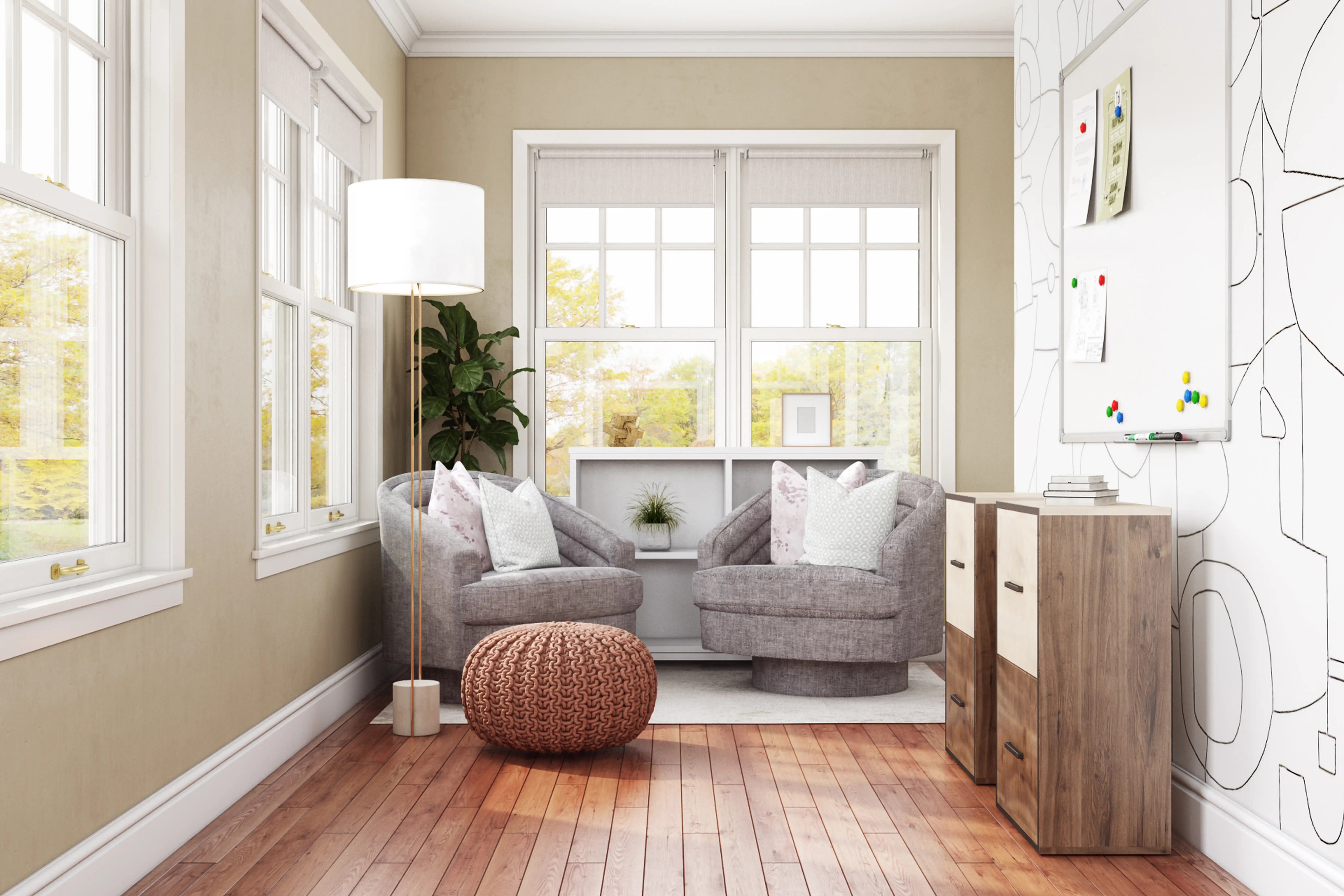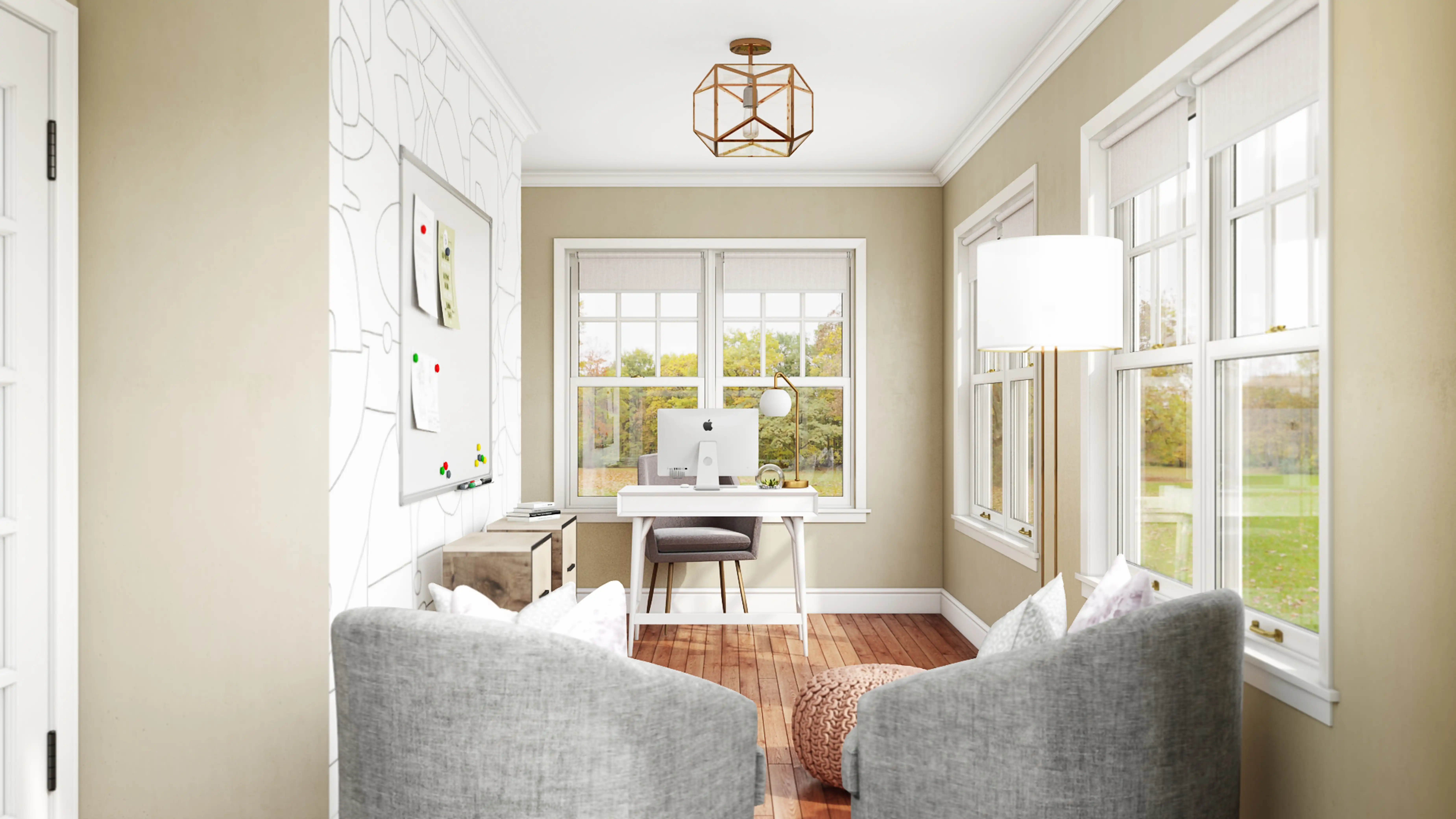 For this Office, Nina selected desks and poufs from West Elm and Surya. Discover Furniture design inspiration on Havenly.
