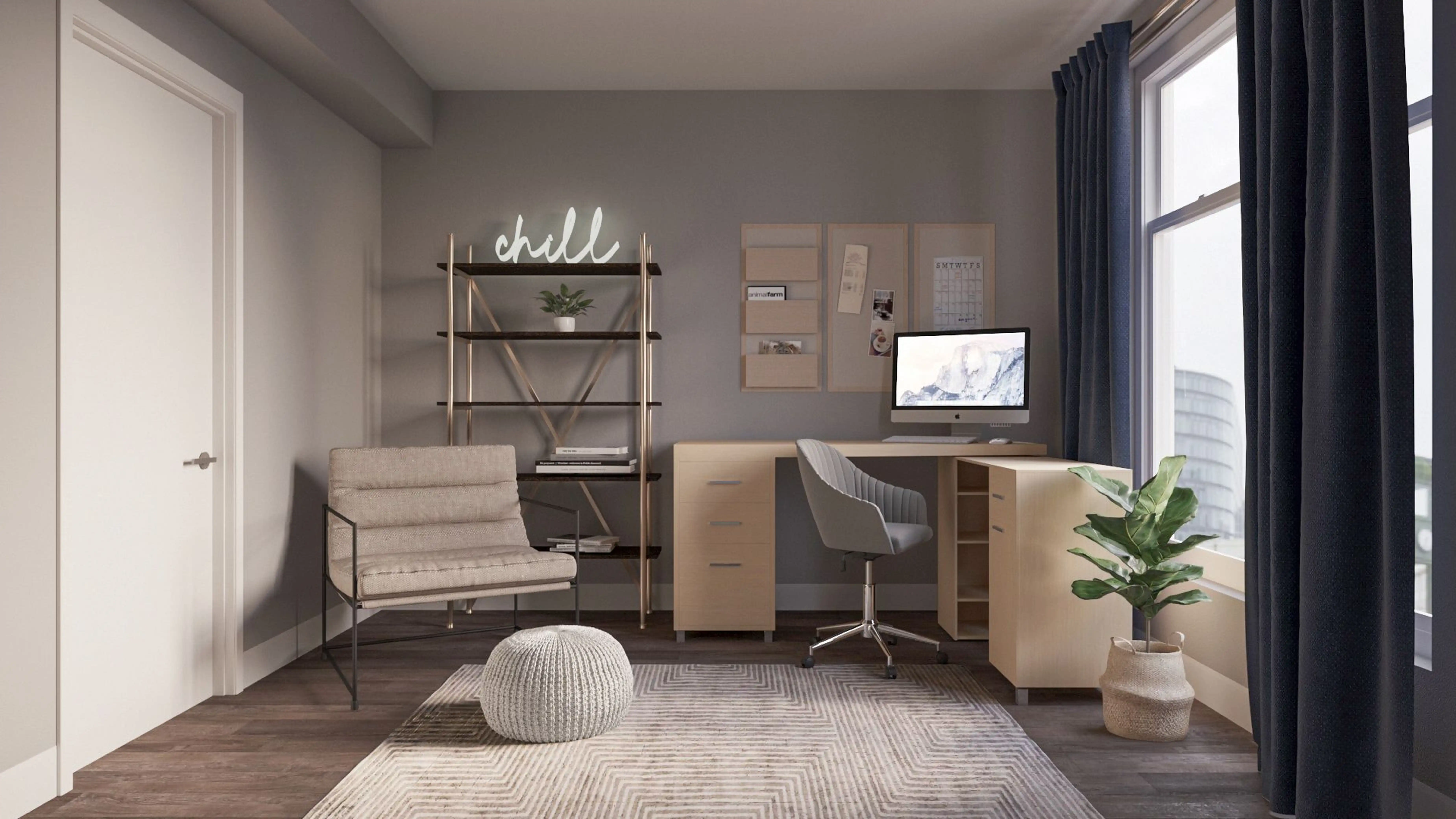 For this Office, Andrea selected ottomans and end tables from Wayfair and Article. Discover Furniture design inspiration on Havenly.