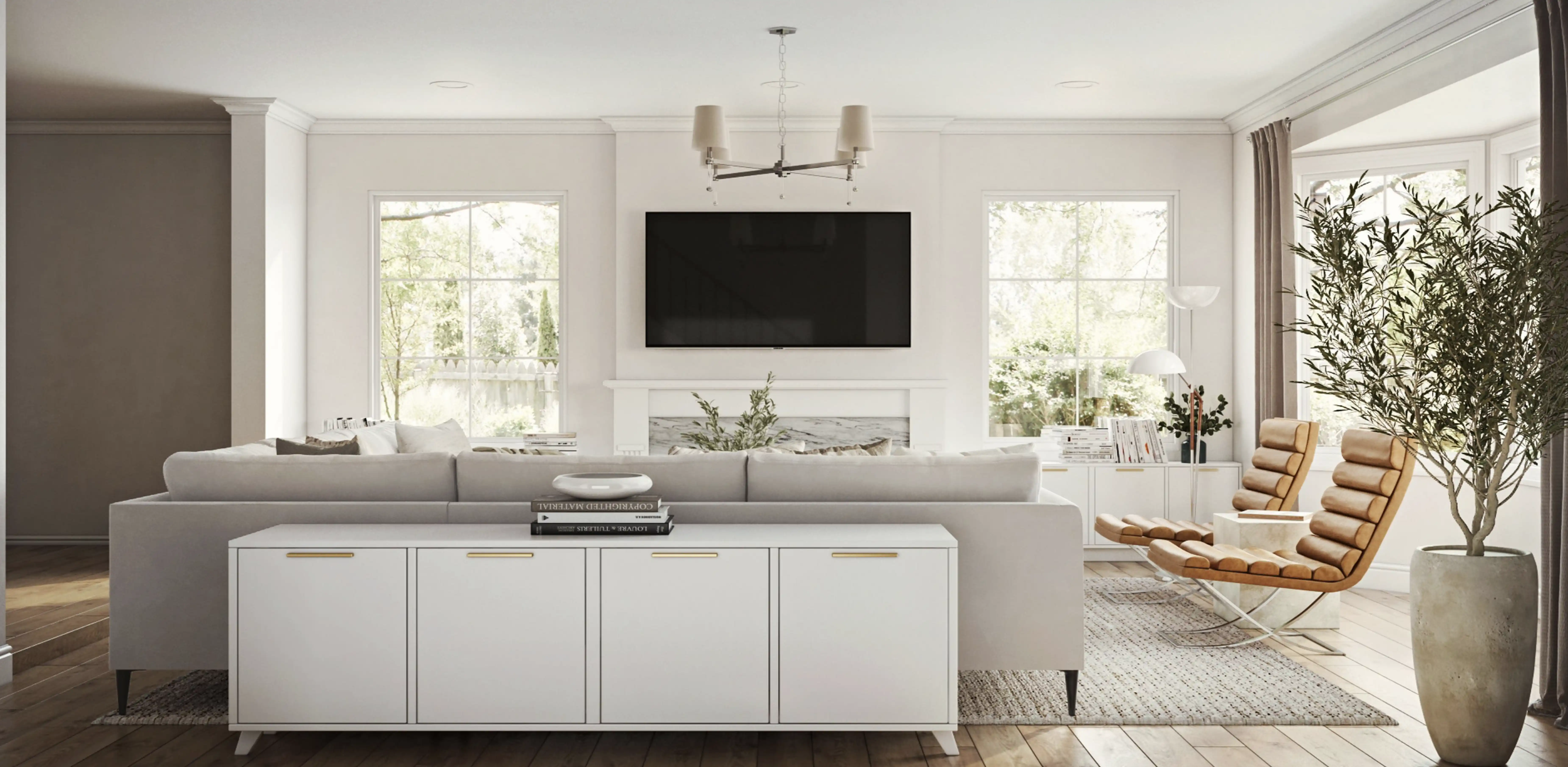 For this Living Room, Stacy selected kitchen, dining room chairs, and end tables from Crate, Barrel, and CB2. Discover Furniture design inspiration on Havenly.