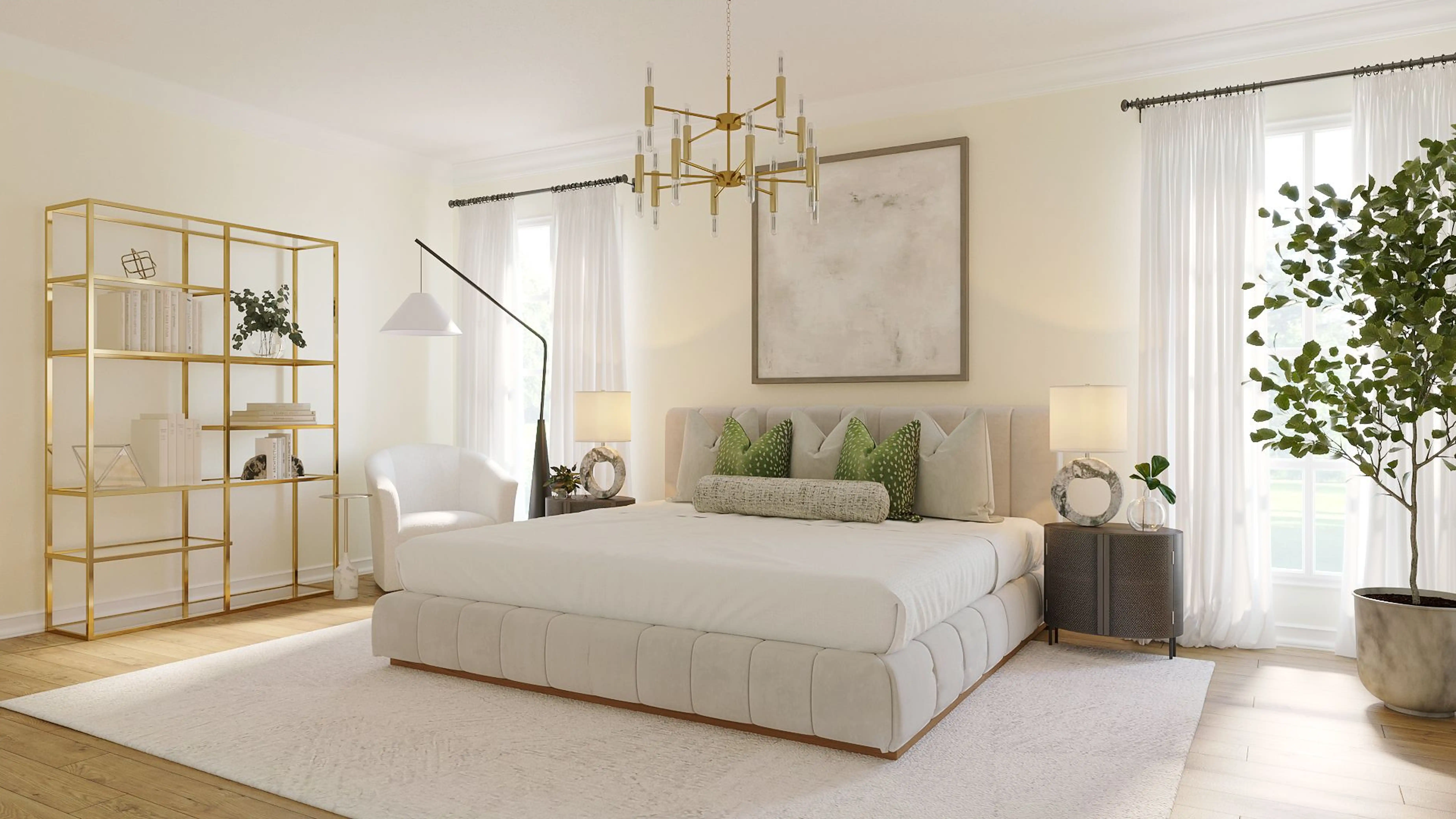 To brighten the design, modern chandeliers and lamps were added to the room. Discover Lighting design inspiration on Havenly.