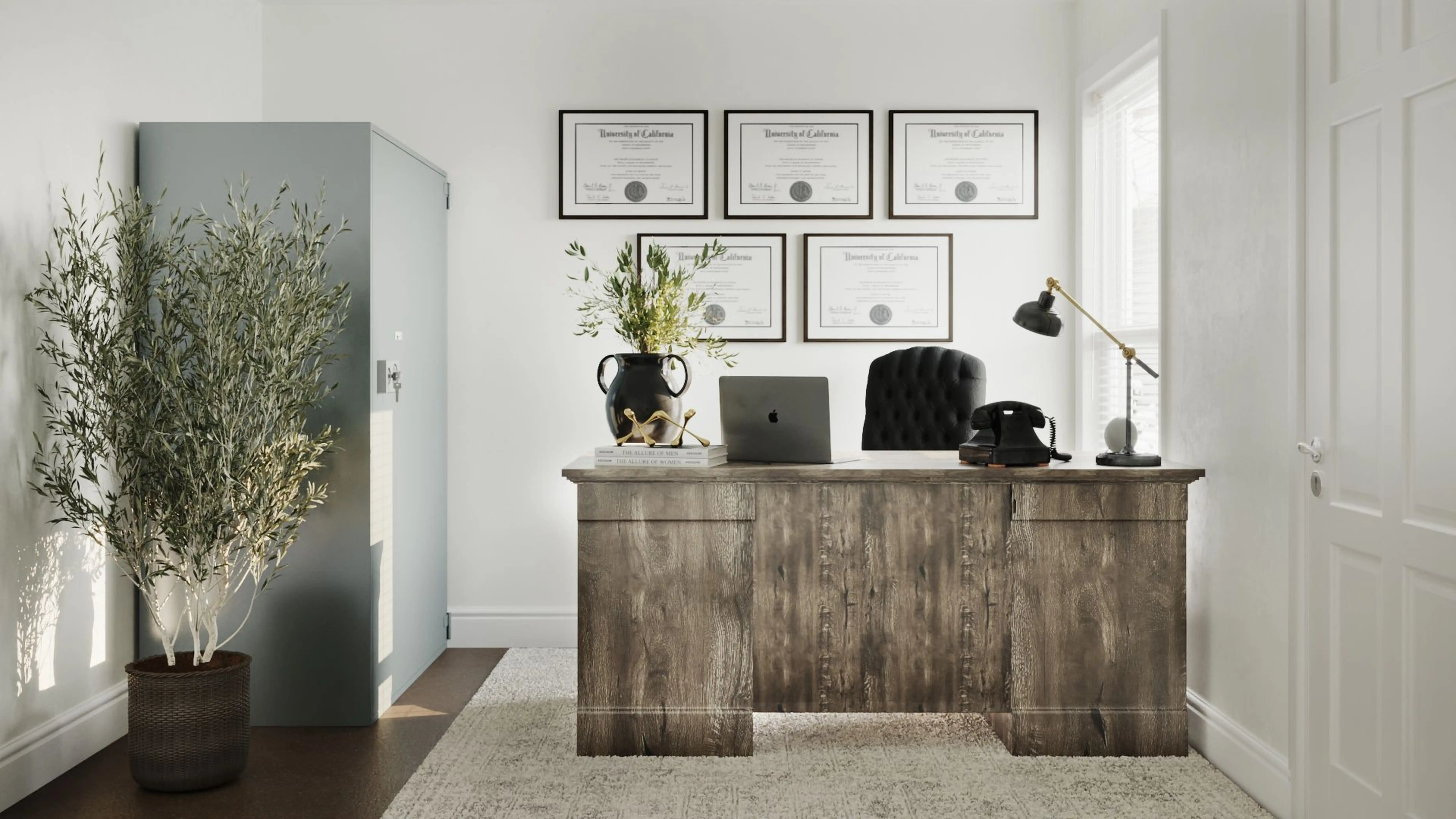 For this room, Isaac selected office chairs, bookcases, and standing shelves from Wayfair and West Elm. Discover Furniture design inspiration on Havenly.