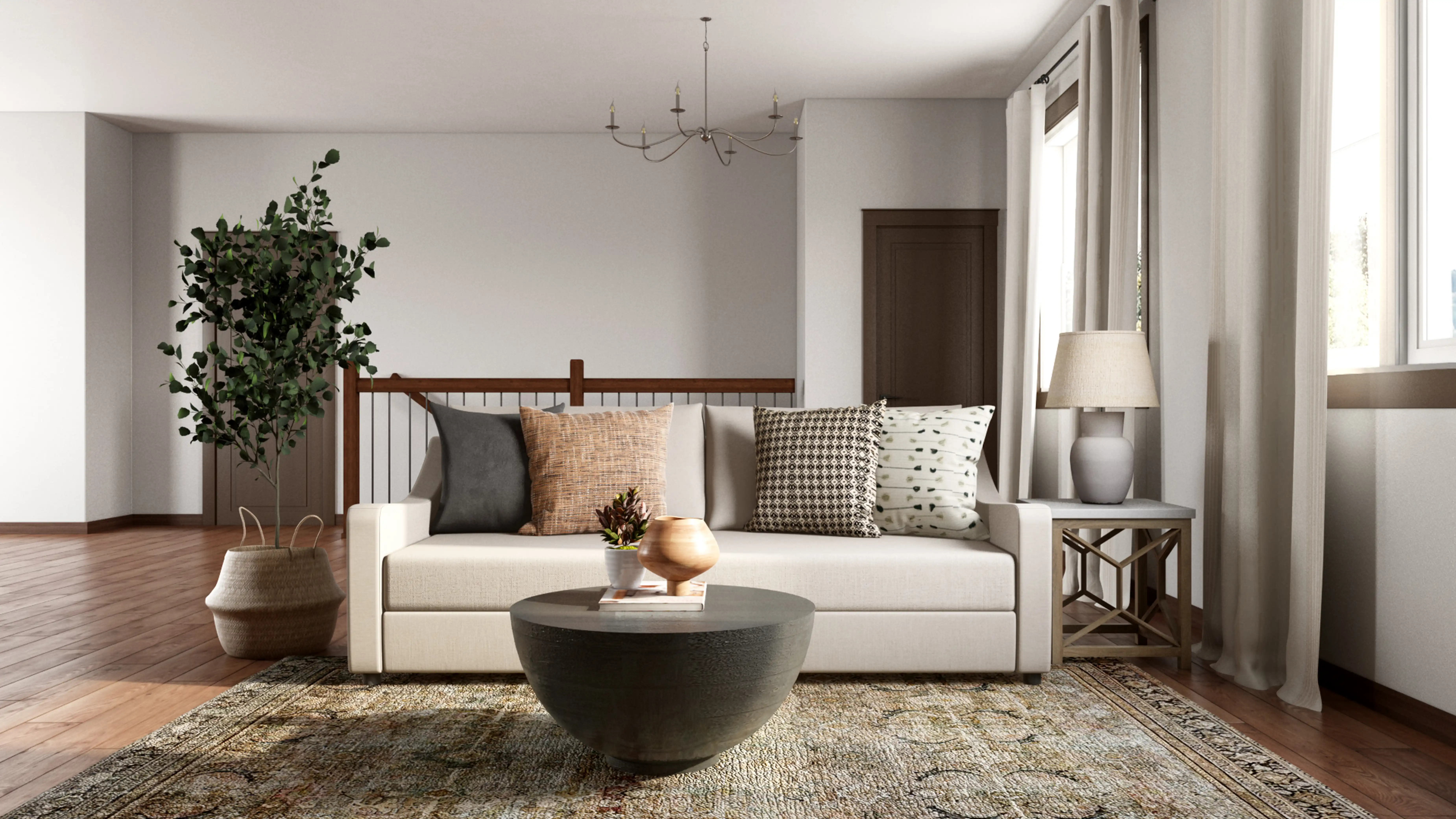 The rug in this space from Wayfair helps add a variety of colors to the room. Discover Rug design inspiration on Havenly.