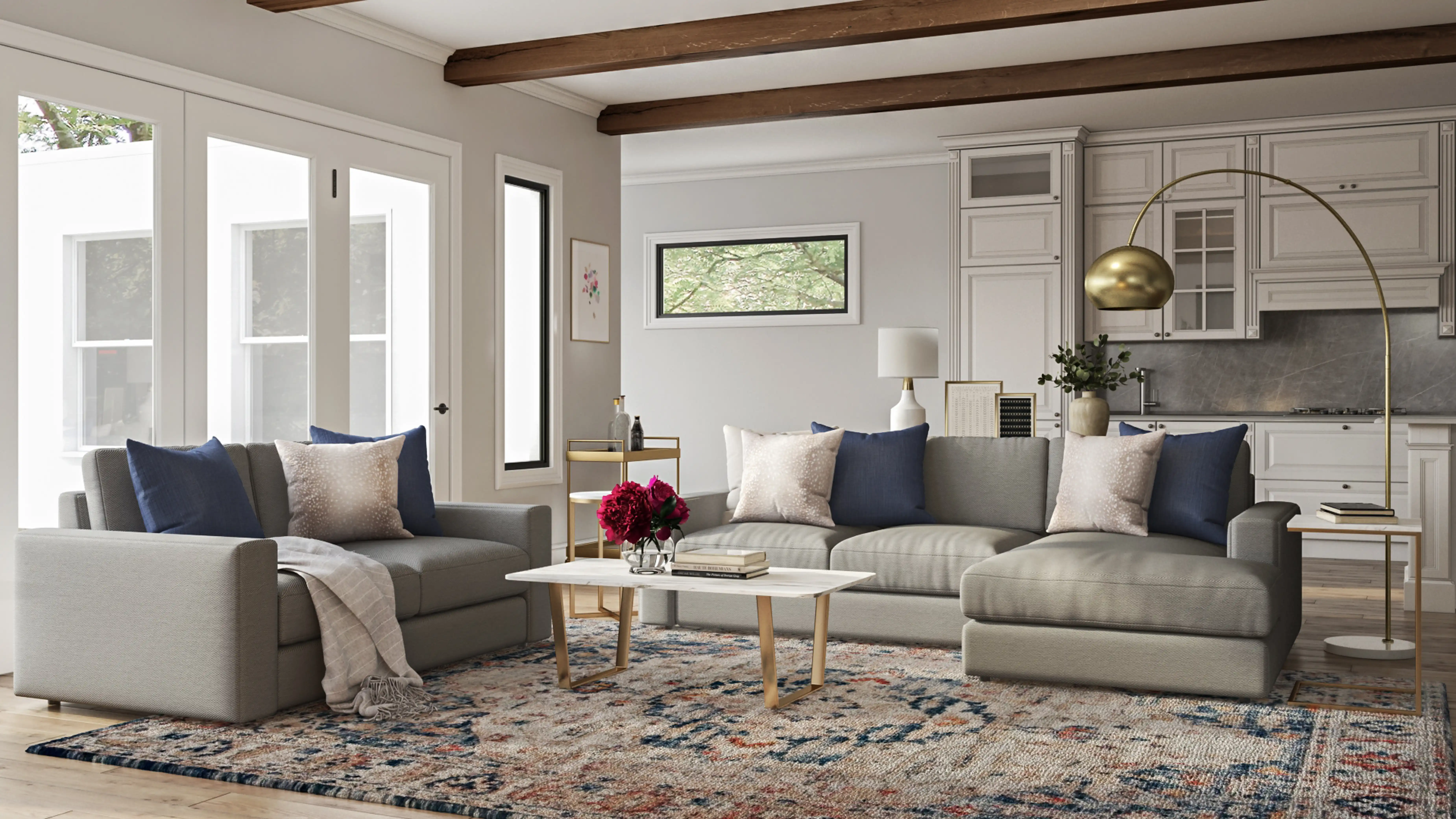 For this Living Room, Caroline selected poufs and ottomans from CB2 and Wayfair. Discover Furniture design inspiration on Havenly.