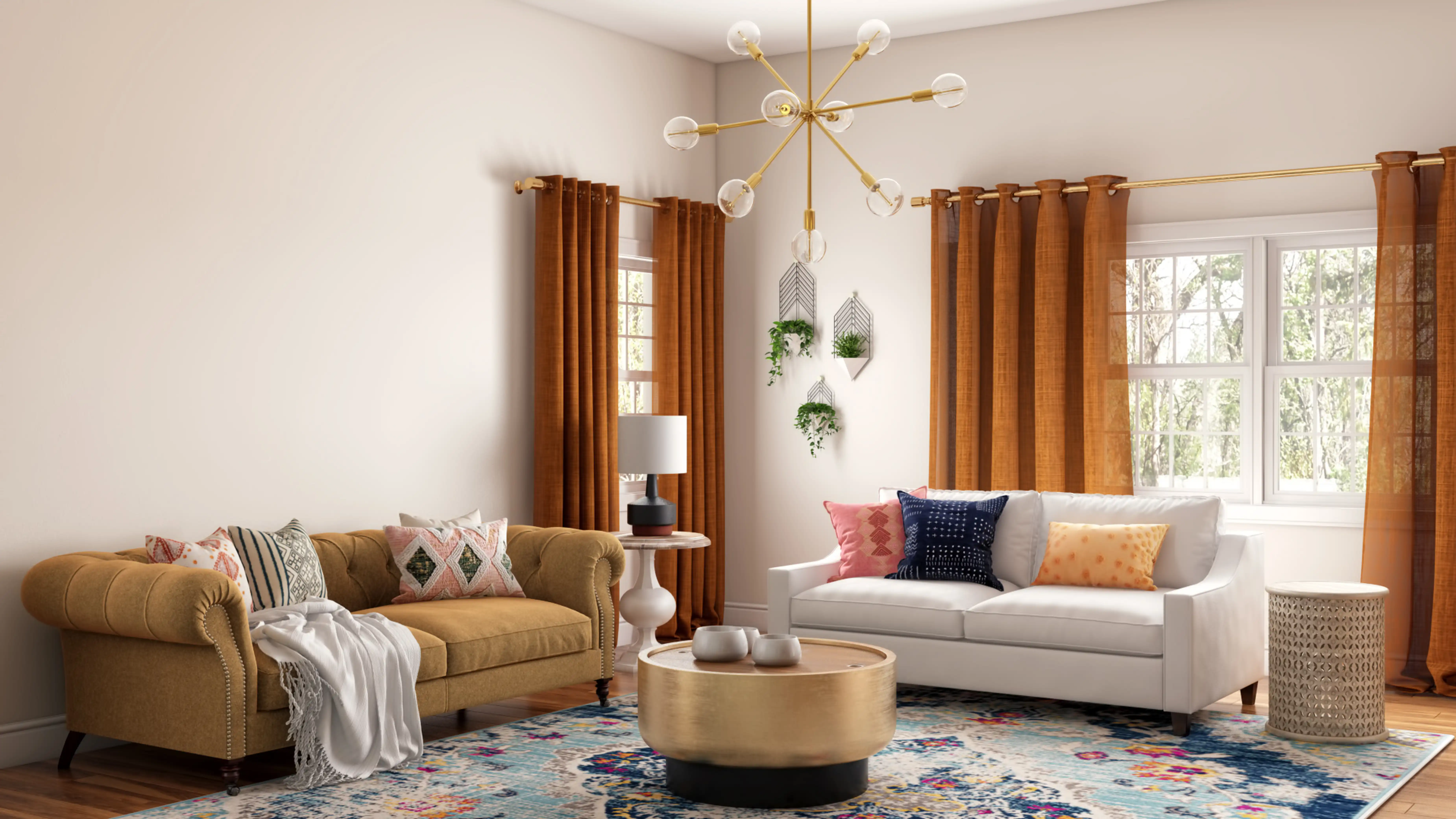 To brighten the design, Eclectic chandeliers and lamps were added to the room. Discover Lighting design inspiration on Havenly.