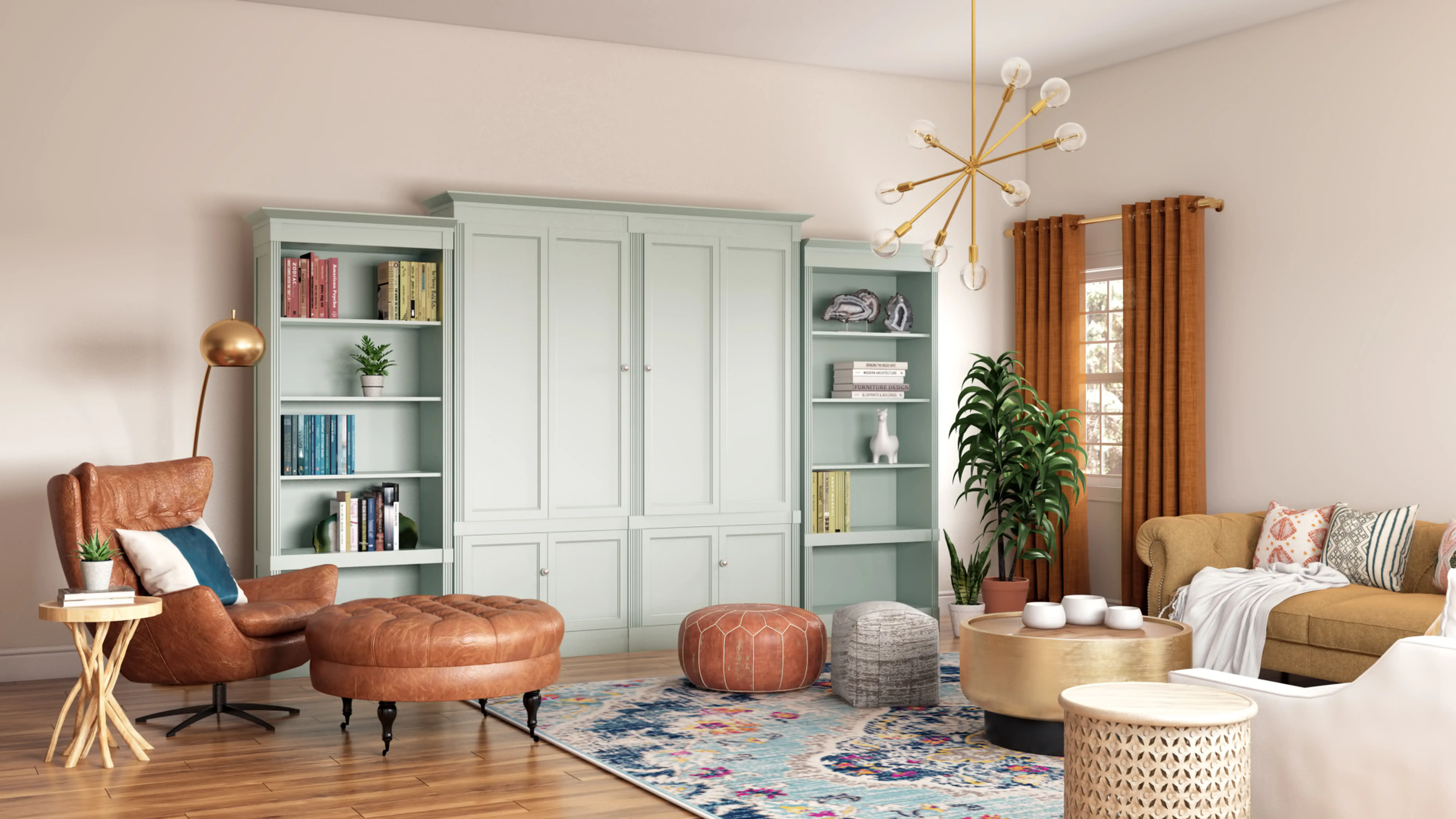 For this Living Room, Kelly selected end tables, folding chairs, and stools from Pottery Barn Kids and West Elm. Discover Furniture design inspiration on Havenly.