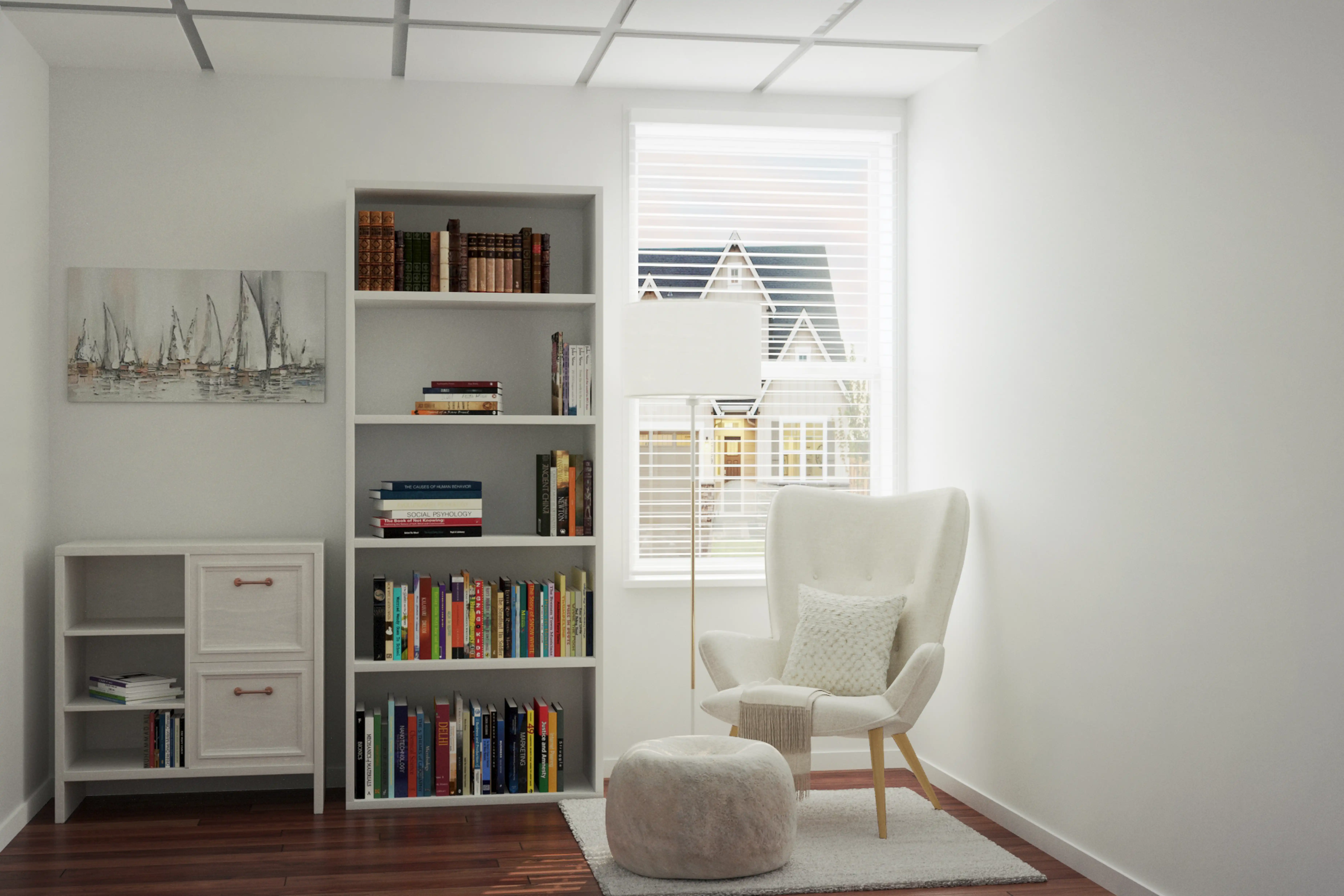 For this Office, Krishnendhu selected ottomans, bookcases, and standing shelves from Wayfair. Discover Furniture design inspiration on Havenly.