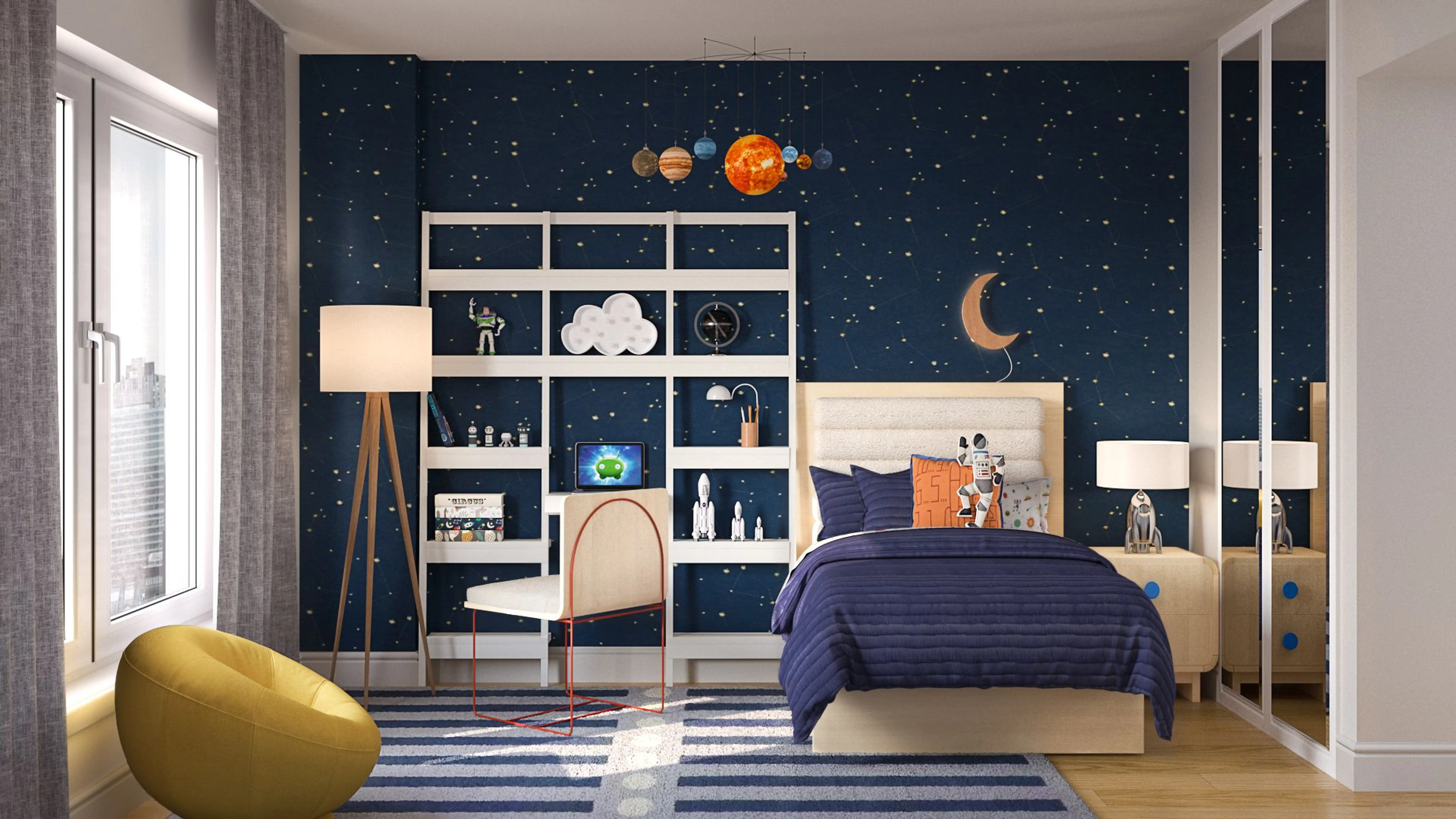The rug in this space from Crate and Kids helps add a variety of colors to the room. Discover Rug design inspiration on Havenly.