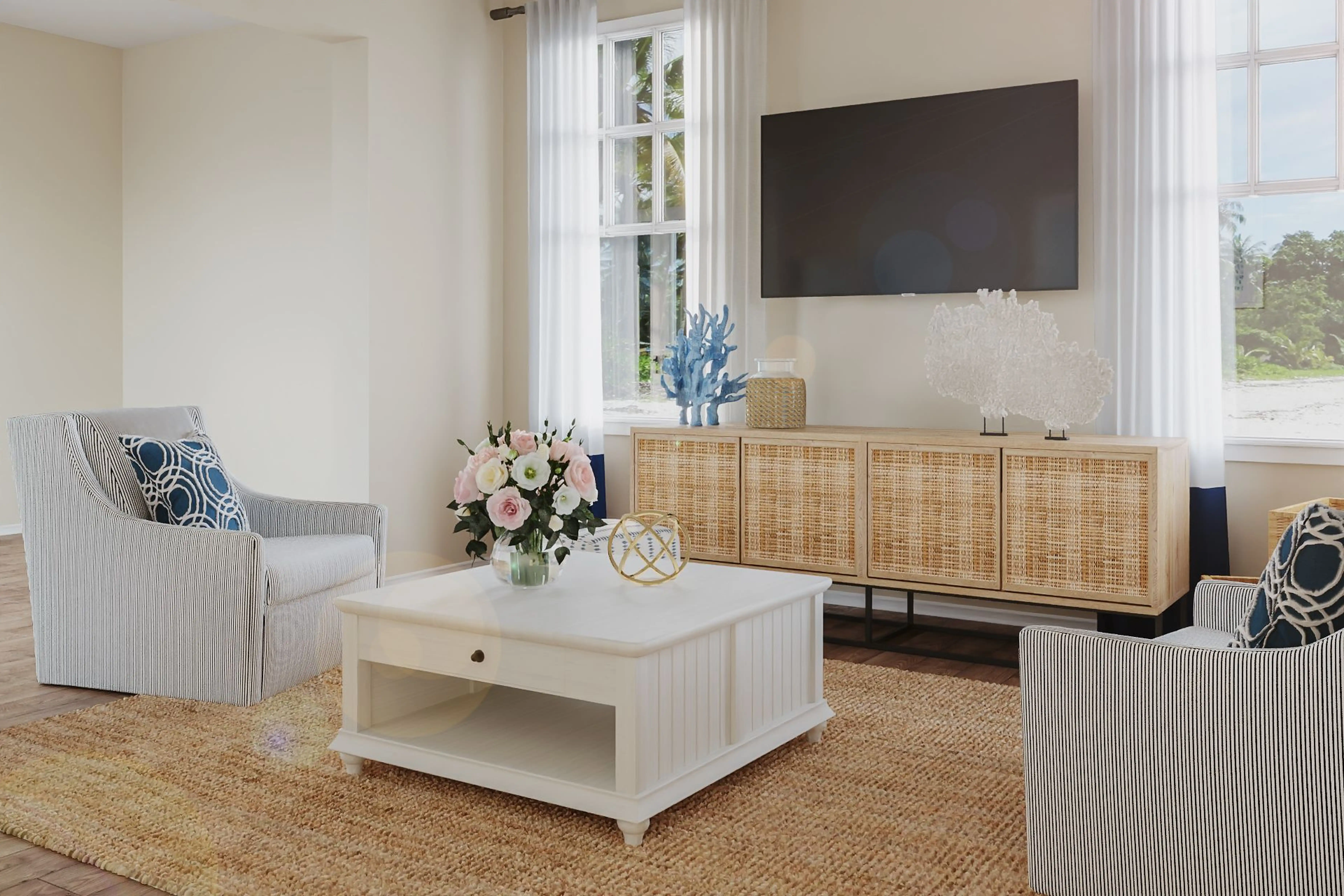 For this Living Room, Emmanuel selected end tables and ottomans from Wayfair and Skyline Furniture. Discover Furniture design inspiration on Havenly.