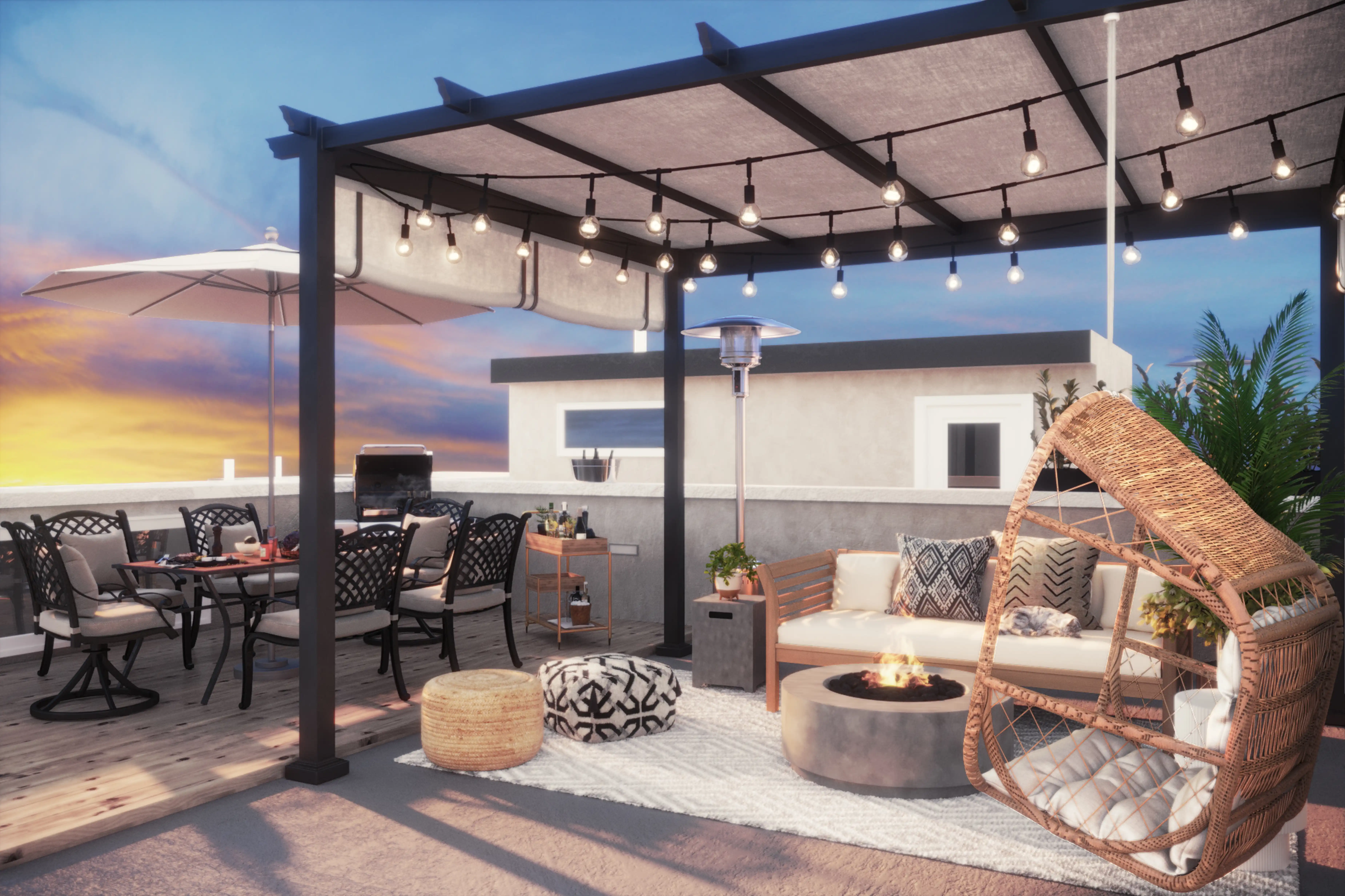 To brighten the design, modern light ropes and strings were added to the room. Discover Lighting design inspiration on Havenly.