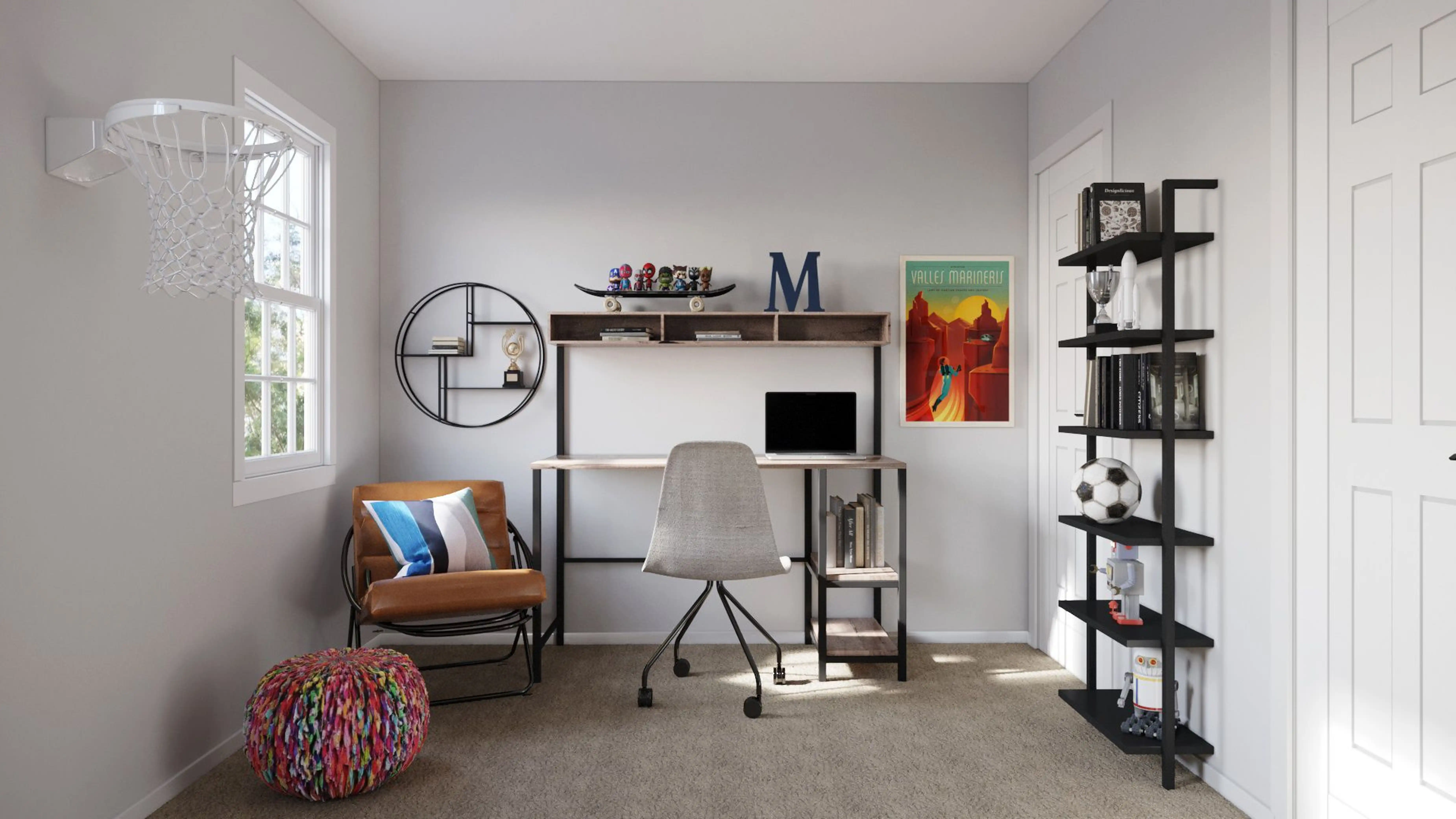 For this Bedroom, Marlene selected desks, kitchen, and dining room chairs from Wayfair and Pottery Barn Teen. Discover Furniture design inspiration on Havenly.