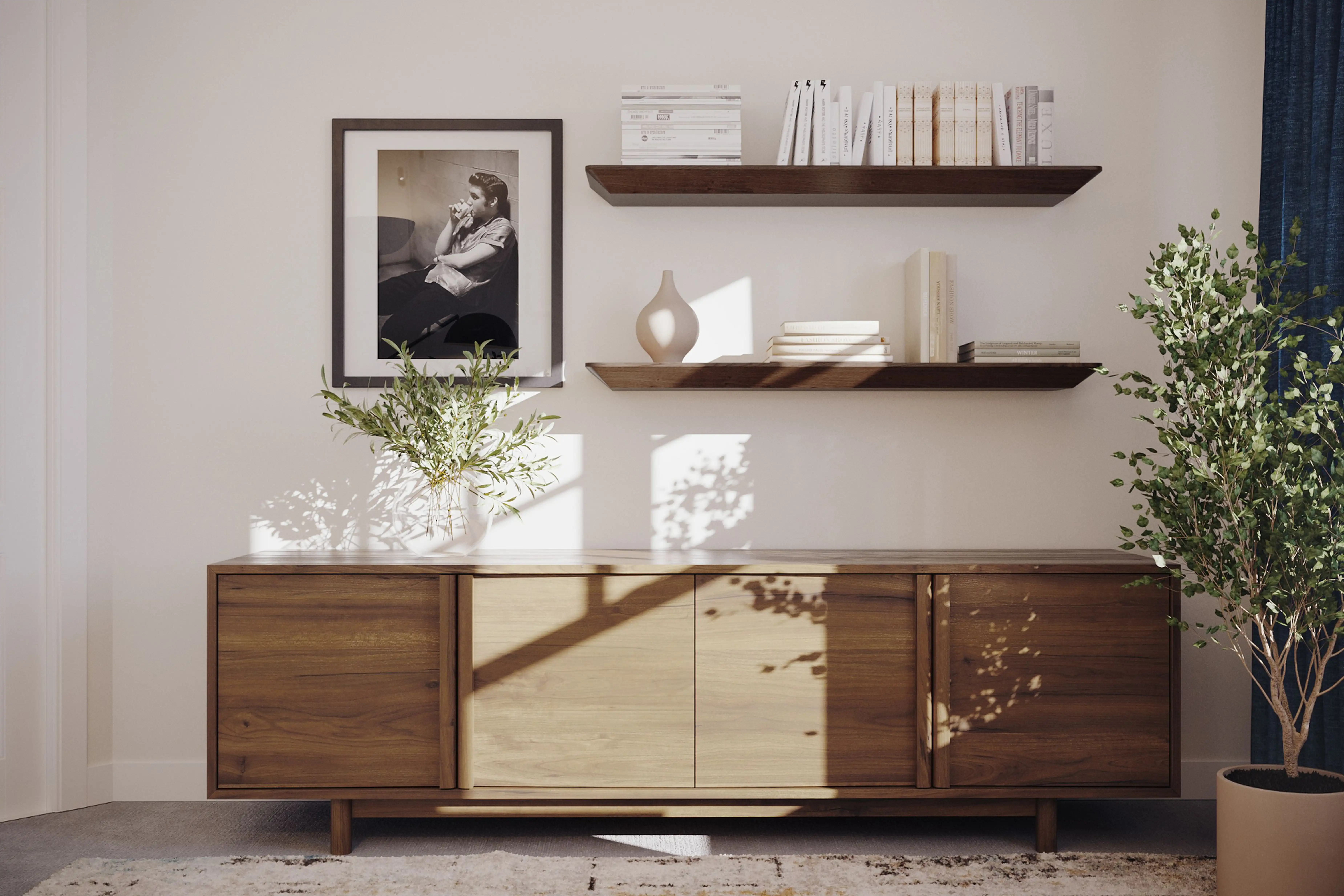 For this room, Isaac selected wall shelves, ledges, media storage cabinets, and racks from West Elm, Crate, and Barrel. Discover Furniture design inspiration on Havenly.