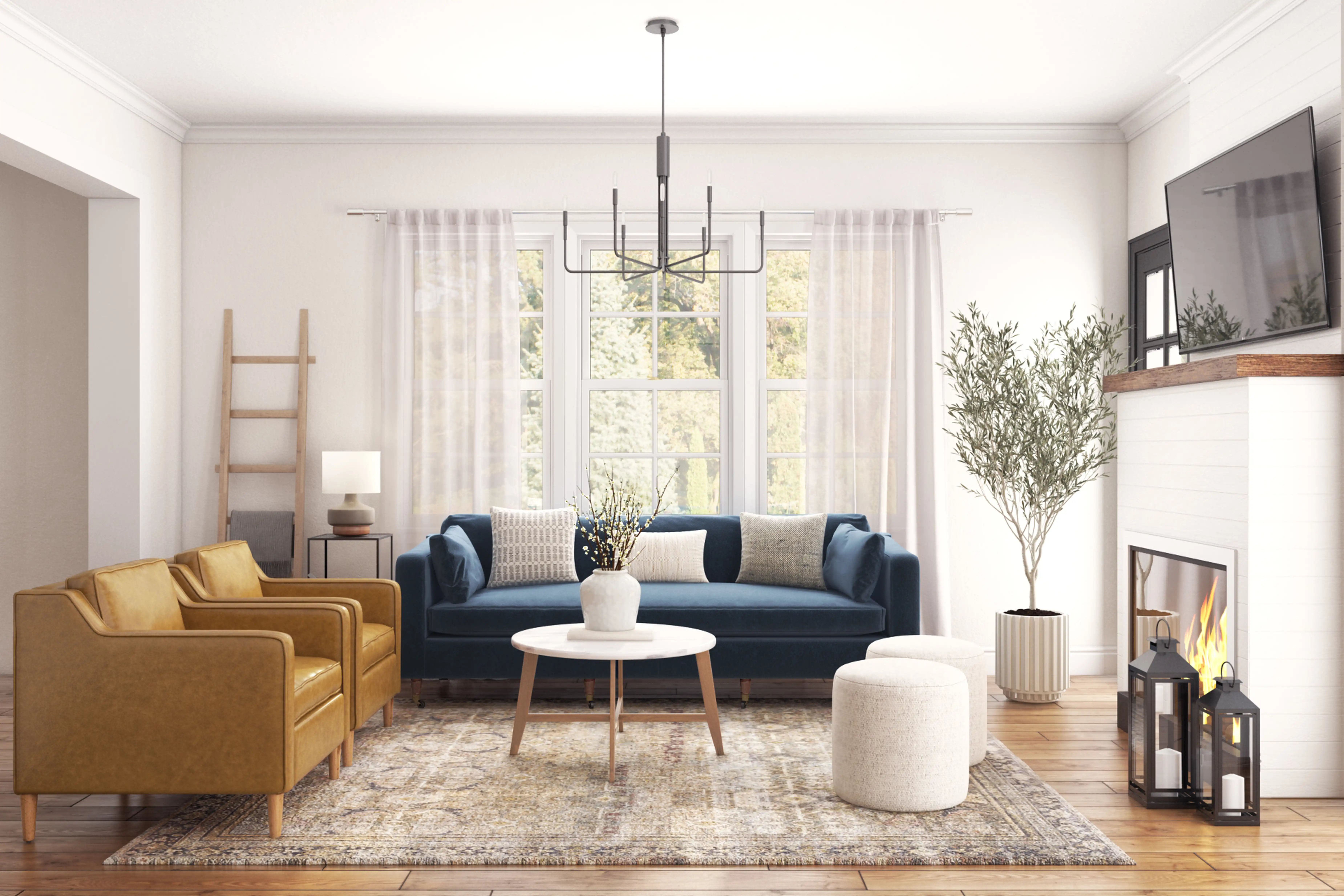 For this Living Room, Daniela selected poufs, bookcases, and standing shelves from Article, McGee, and Co. Discover Furniture design inspiration on Havenly.