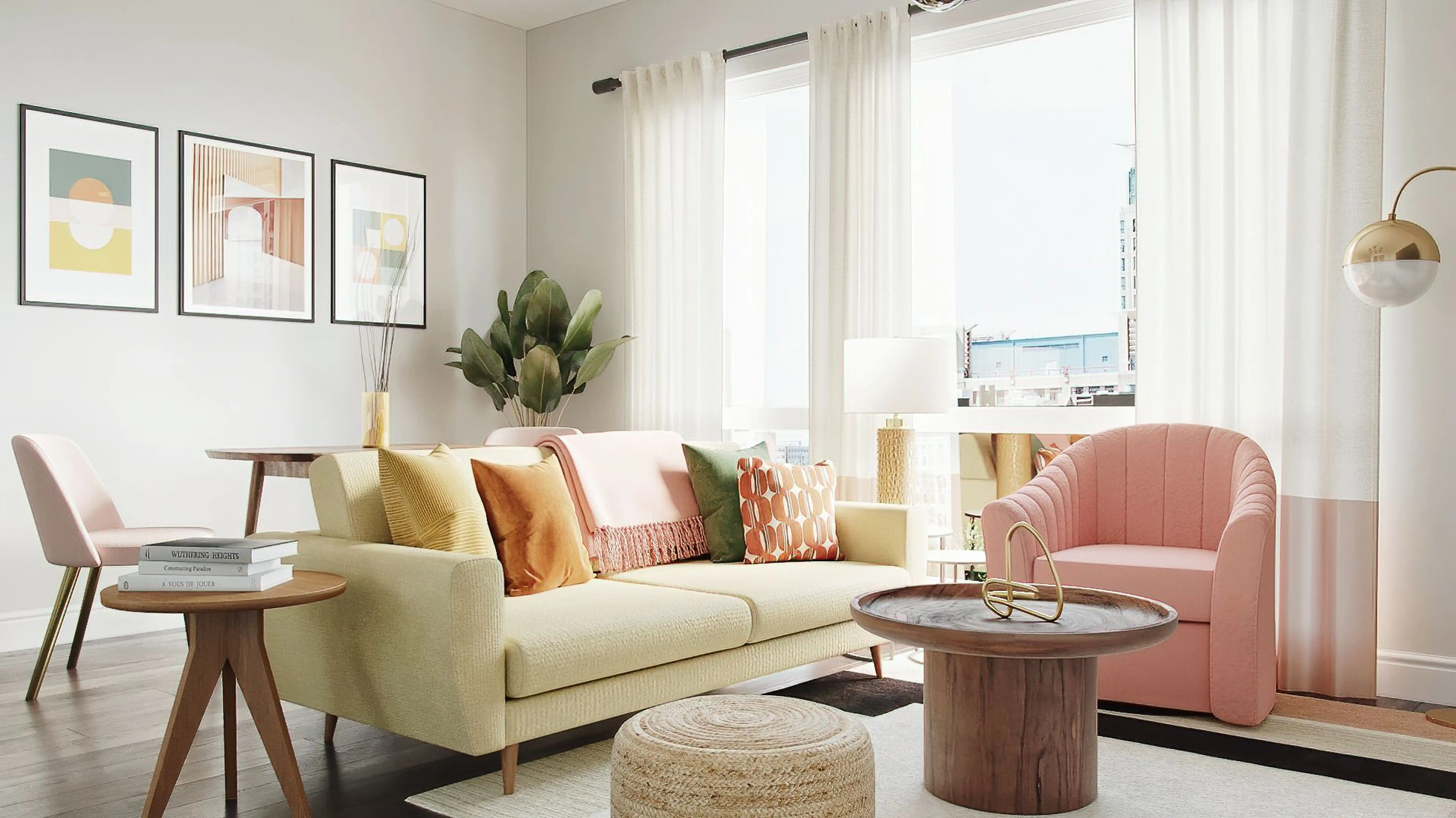 For this Living Room, Emmanuel selected poufs and end tables from Dash, Albert, and West Elm. Discover Furniture design inspiration on Havenly.