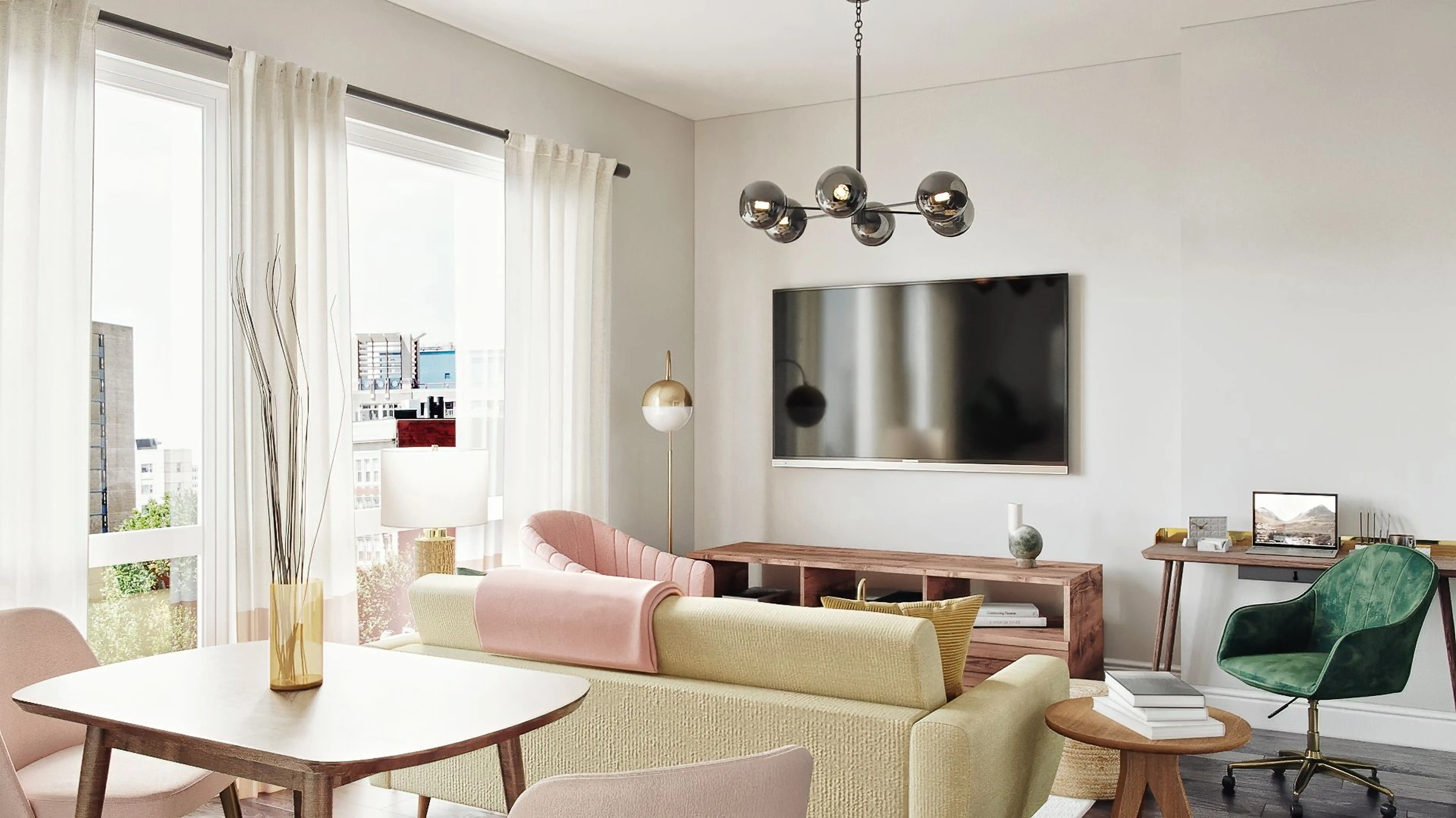 To brighten the design, Midcentury Modern lamps and chandeliers were added to the room. Discover Lighting design inspiration on Havenly.