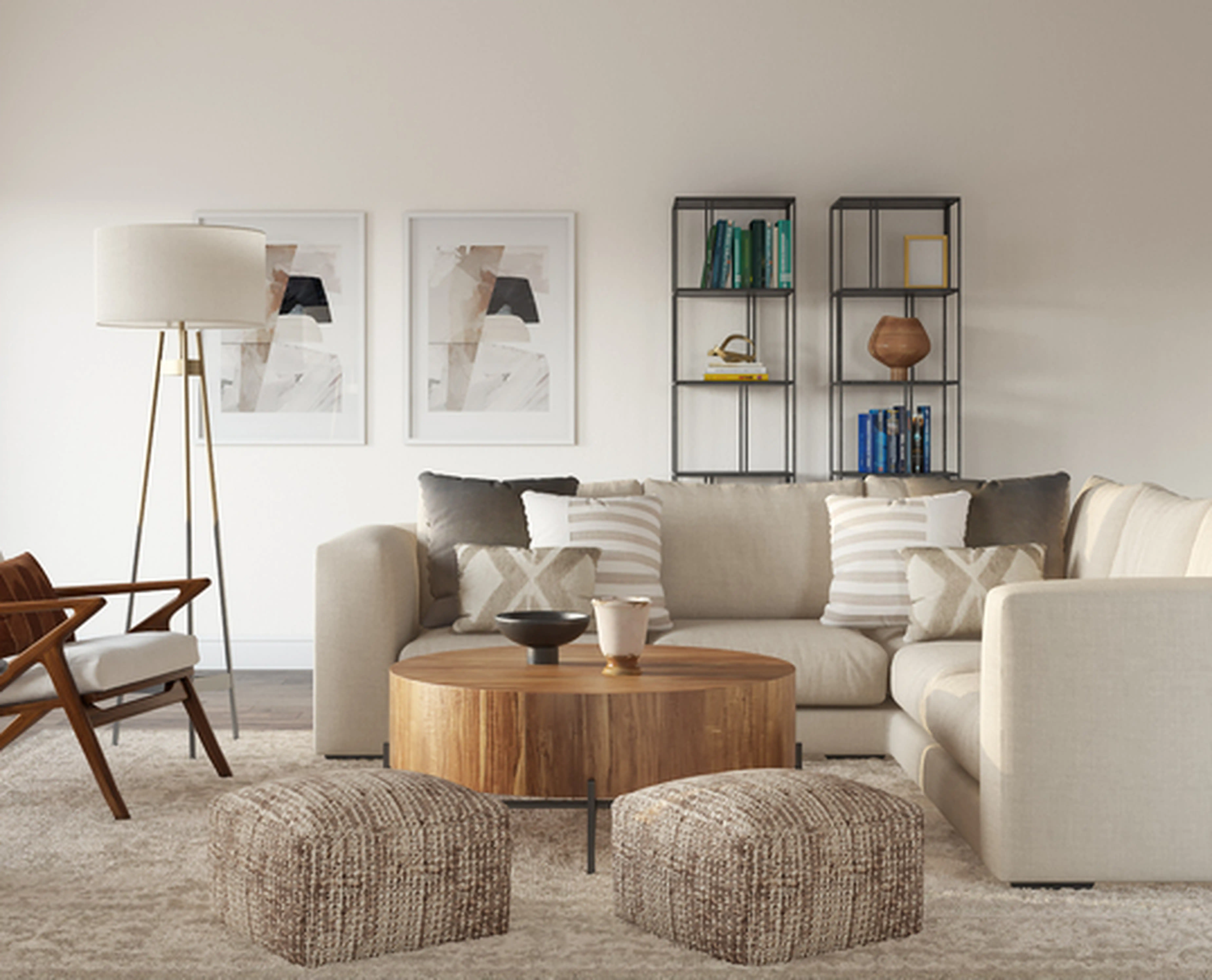 For this room, Regina selected end tables, bookcases, and standing shelves from CB2 and West Elm. Discover Furniture design inspiration on Havenly.